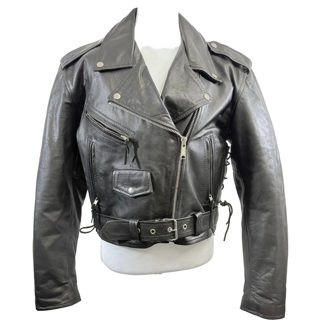 Interstate Leather Biker Style Jacket – Size 12 This authentic biker jacket showcases the rugged...