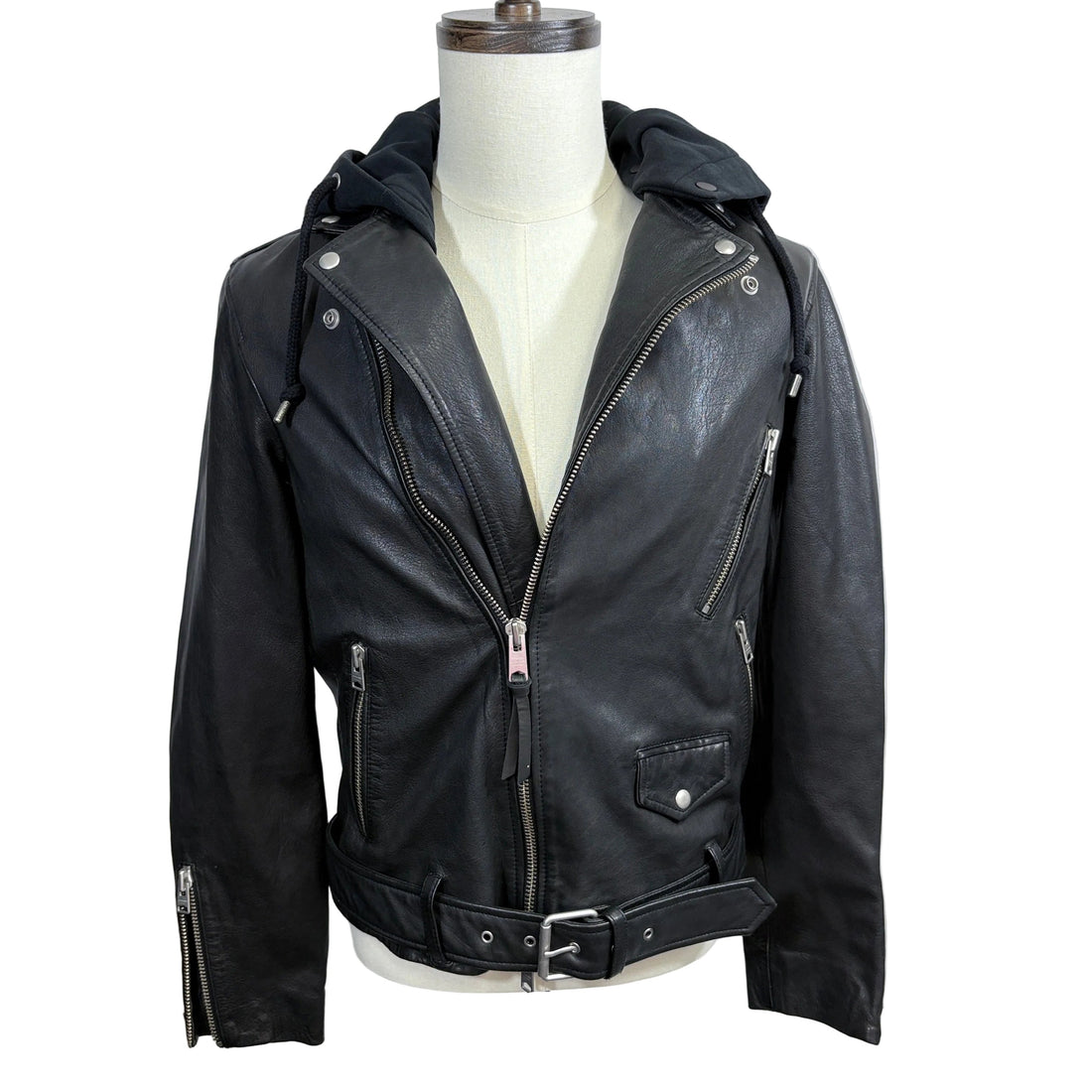 Allsaints Leather jacket with hood, size small