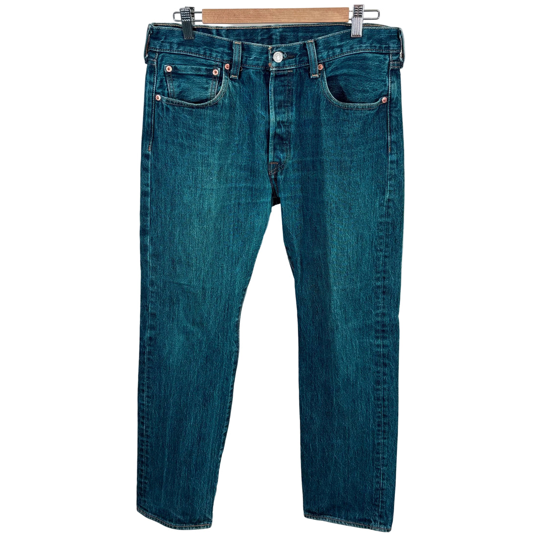 Classic Levi 501 button fly jeans in men's waist size 33" showcase the iconic straight-leg...