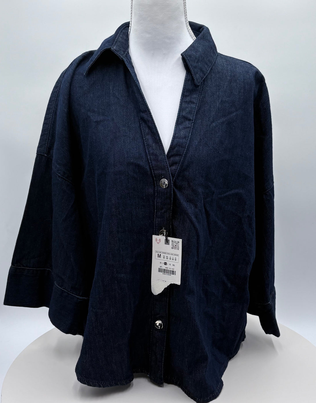 Authentic Zara denim blouse in pristine condition, still bearing original tags. This pre-owned piece showcases...