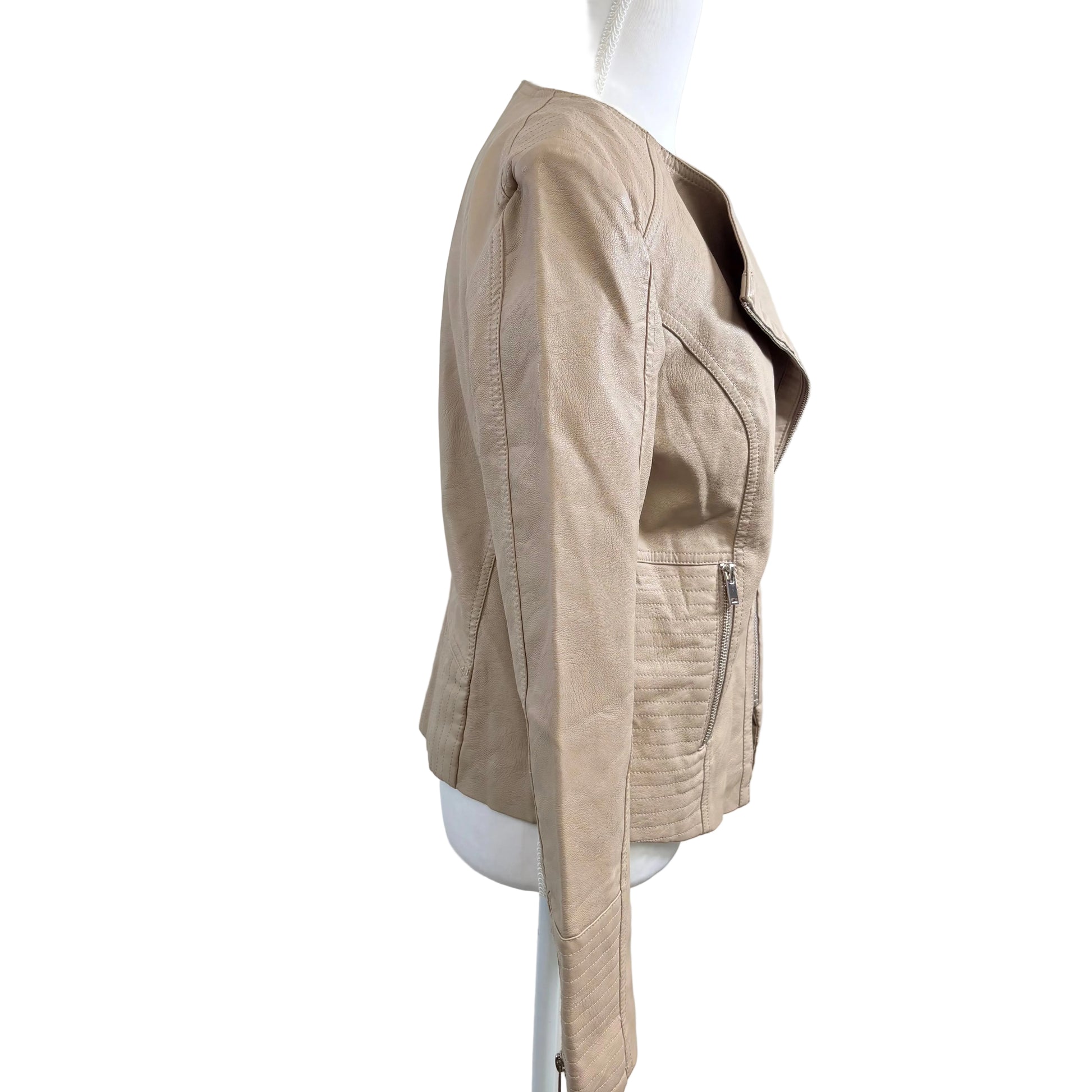Elevate your wardrobe with the Amaryllis faux leather jacket—a sophisticated piece that delivers premium style without compromise. Crafted from high-quality faux leather, this medium-sized jacket offers a sleek, polished finish that works seamlessly from casual outings to evening occasions. The gently used condition means you're investing in a well-maintained garment with plenty of wear ahead. Perfect for layering over dresses, tees, or sweaters, this versatile jacket adds an instant edge to any ensemble while maintaining the comfort and durability you expect from quality outerwear.