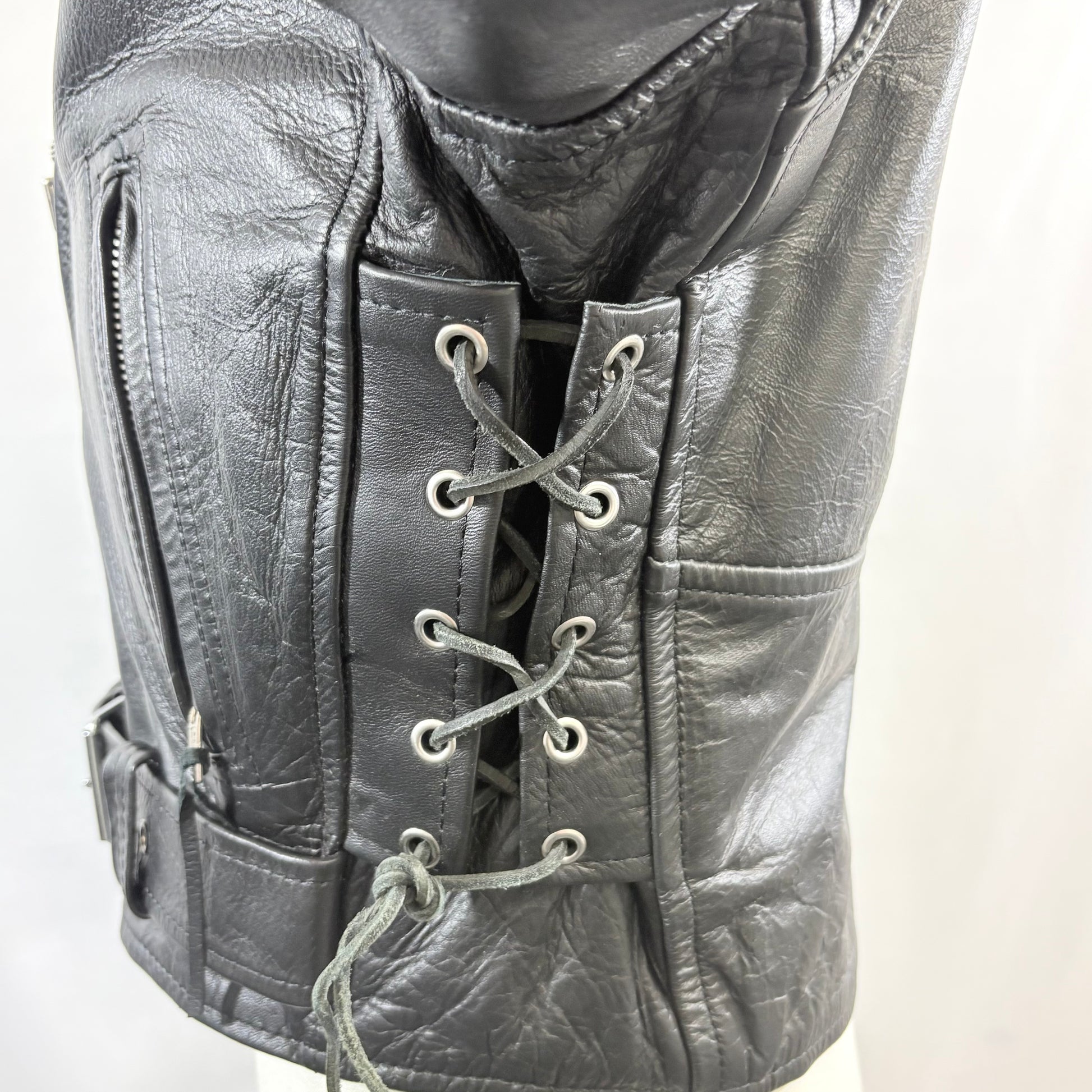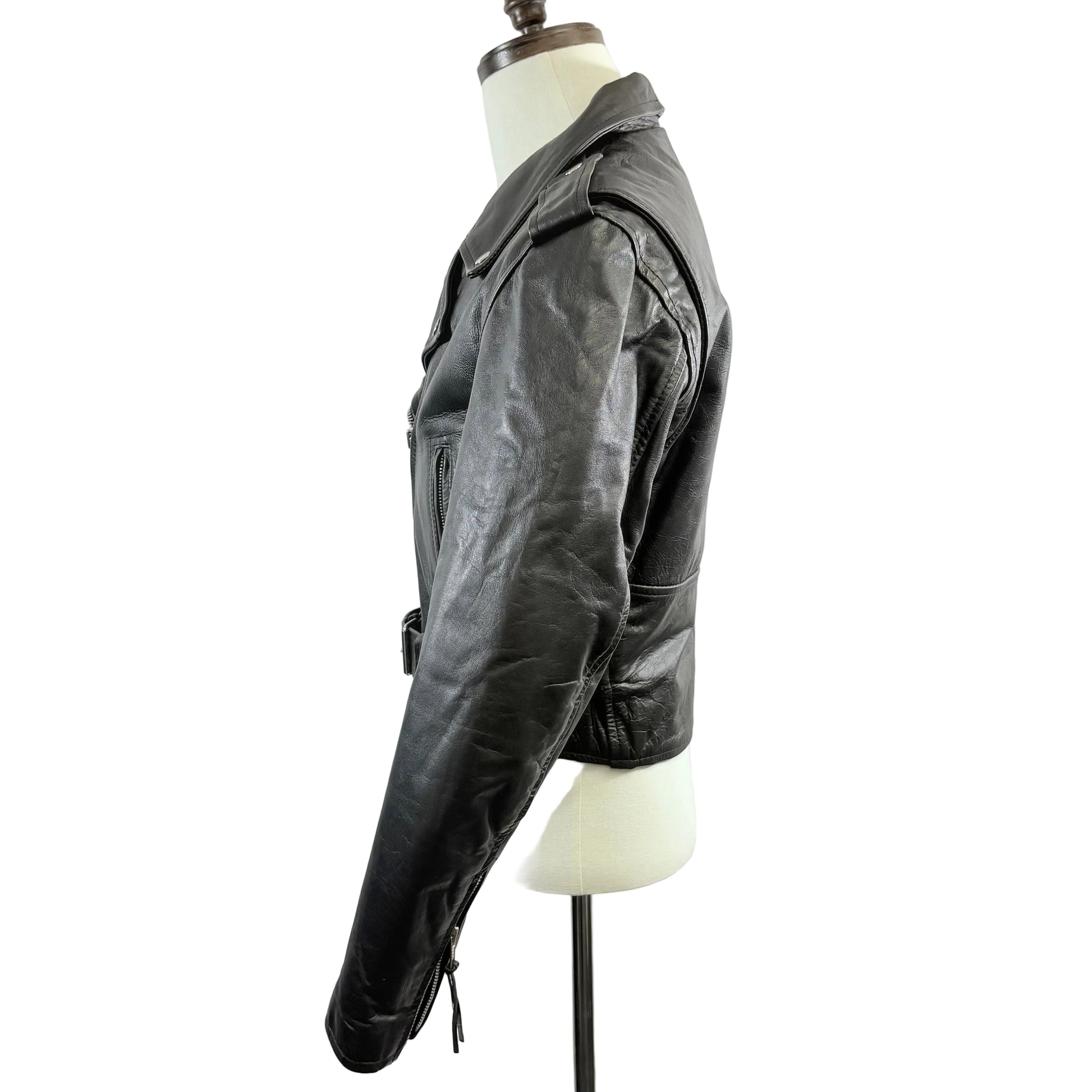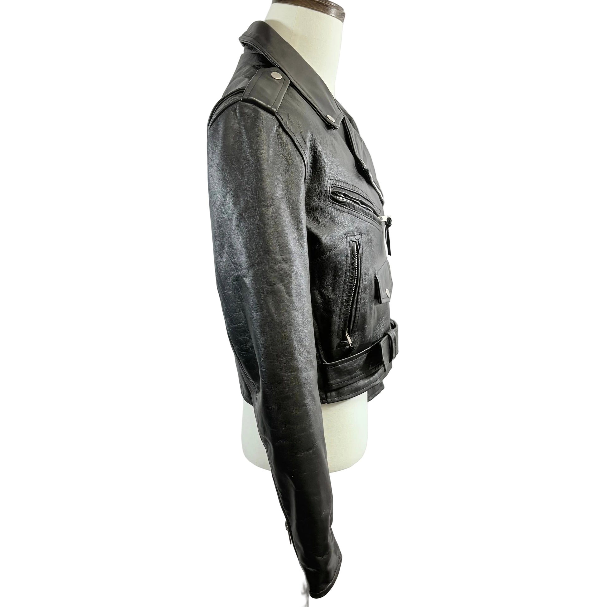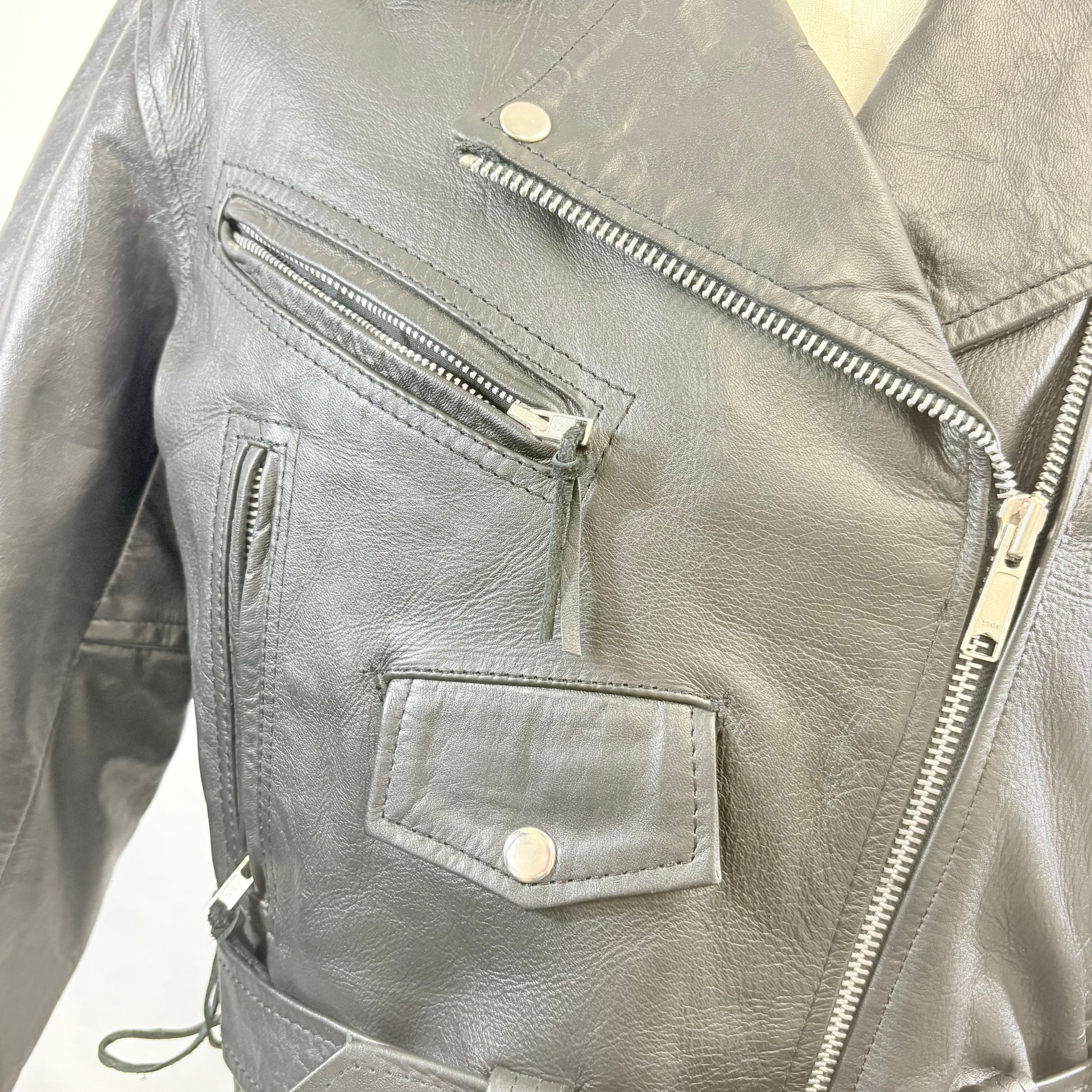 Crafted from supple leather, this Barney's biker jacket delivers authentic edge with timeless appeal. The structured silhouette features classic hardware, zippered pockets, and a fitted waist that flatters while providing movement. Gently used and in excellent condition, this size large piece transitions seamlessly from casual weekends to night-out styling. A versatile wardrobe essential that pairs with everything from denim to dresses.