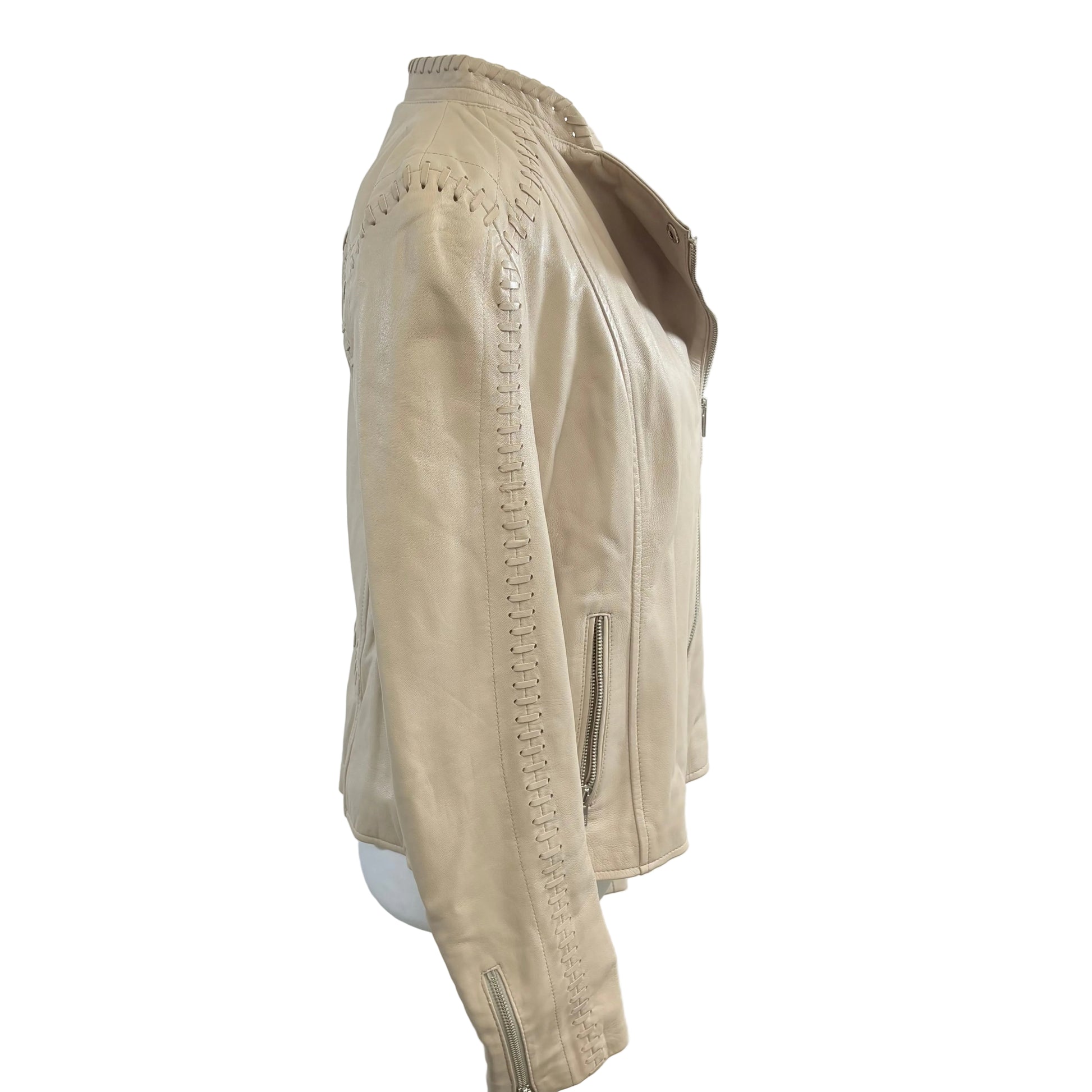 Black Rivet leather jacket in size medium, expertly crafted with premium leather construction. This gently used piece retains its supple texture and rich finish, making it an ideal choice for those seeking authentic vintage appeal without compromise. The structured fit provides a polished silhouette suitable for both casual and refined occasions. Classic styling ensures versatility across seasons and wardrobes. A timeless investment piece that develops character with wear.