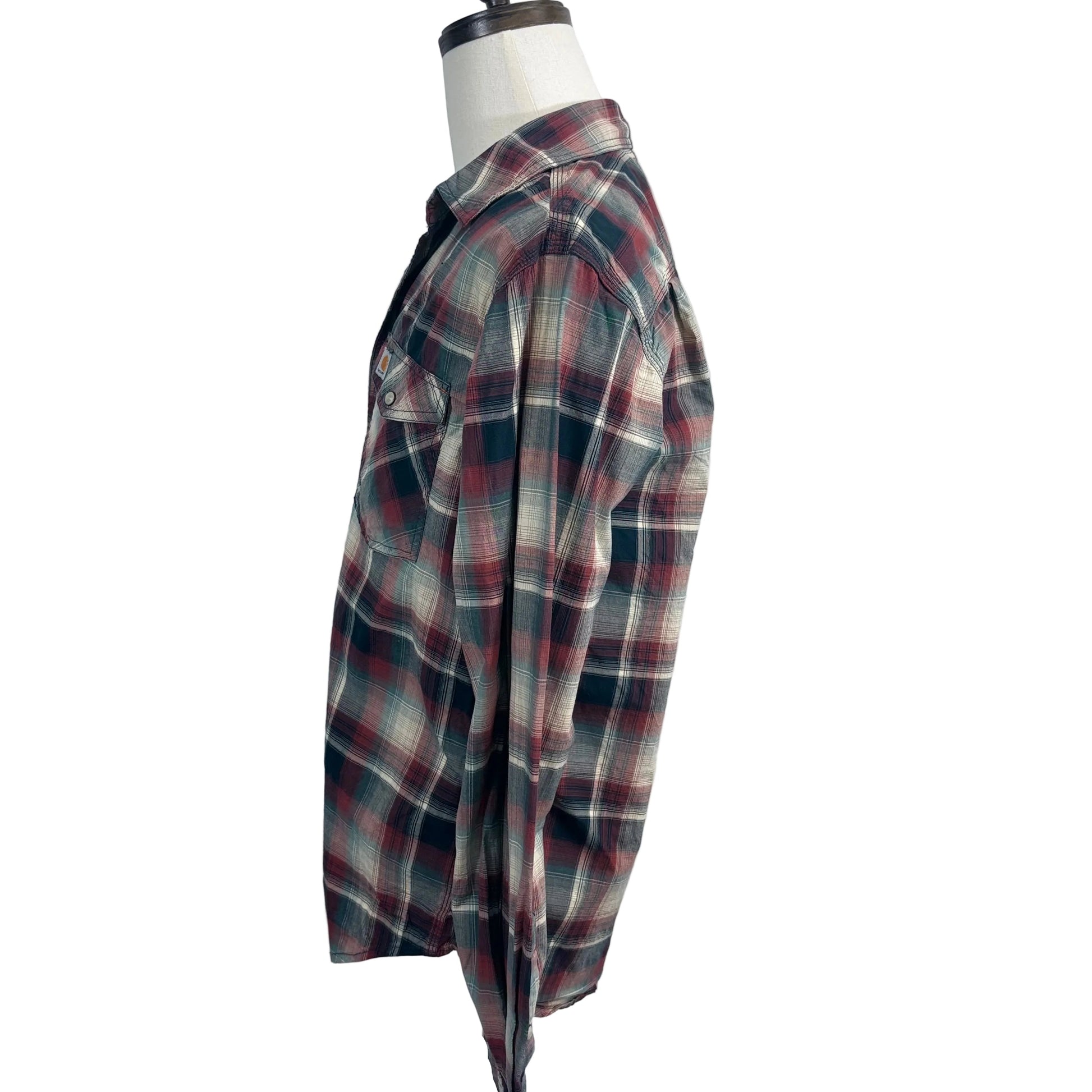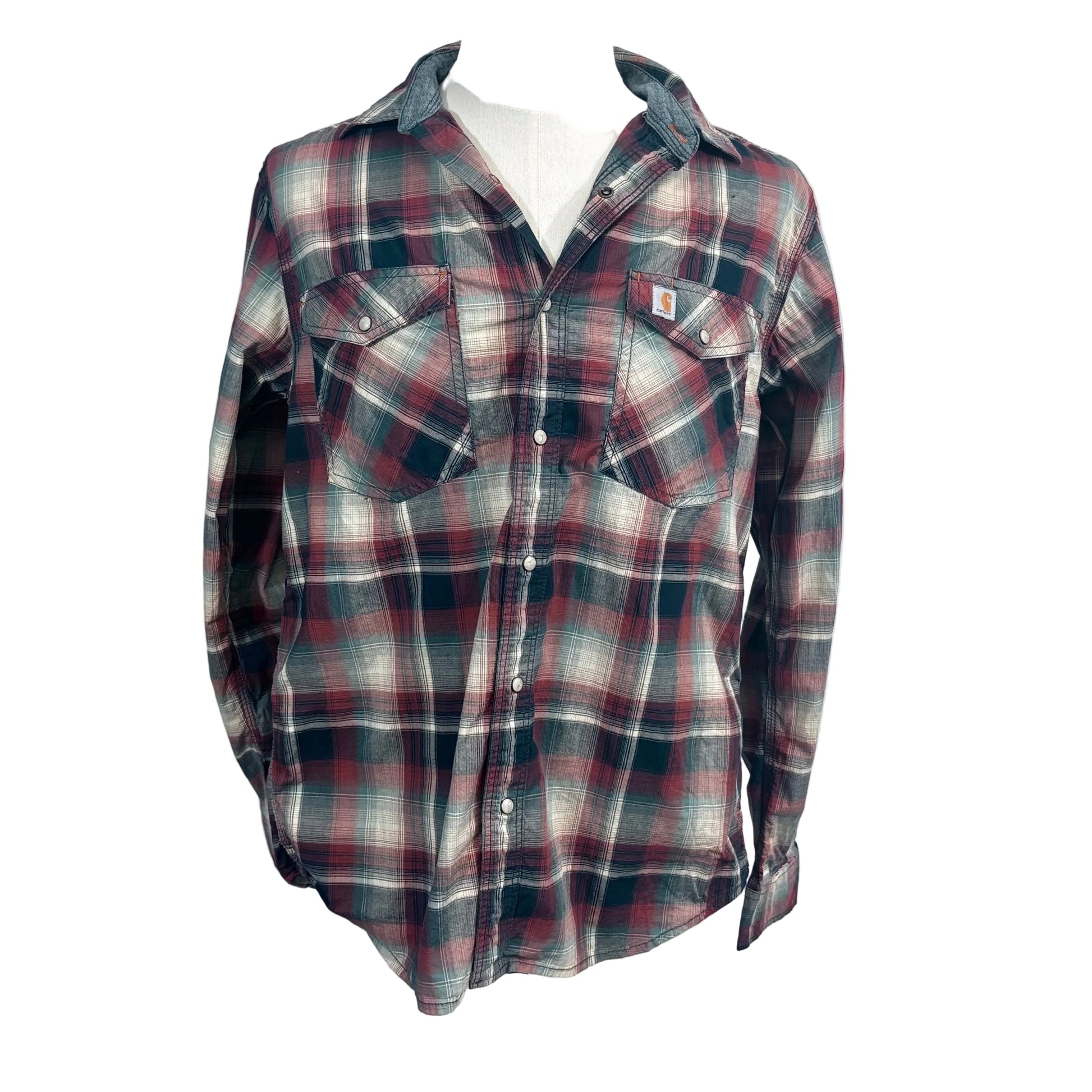 Carhartt's legendary durability meets vintage charm in this gently used long sleeve button shirt. Built for work but equally at home on weekends, this medium fits the sweet spot between structured and comfortable. The fabric's already broken in—no stiffness, just that perfect worn-in feel that new pieces spend months trying to achieve. Whether you're layering for function or style, this shirt delivers the no-nonsense quality Carhartt's known for, minus the premium price tag. A practical upgrade that actually improves with age.