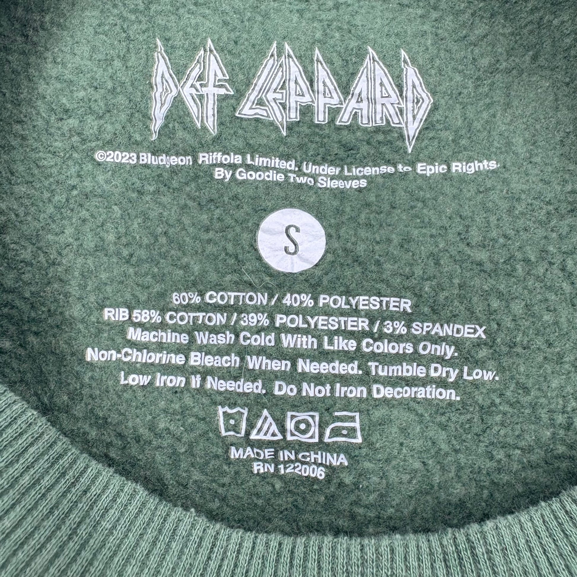 Vintage Def Leppard long sleeve sweatshirt in size small, gently used condition. This classic band merchandise piece features the iconic rock legend's branding and delivers authentic 80s nostalgia. The soft, comfortable fabric makes it ideal for casual wear, layering, or adding to a music memorabilia collection. Minor wear consistent with gentle use enhances its vintage appeal. Perfect for devoted fans and vintage fashion enthusiasts seeking authentic band apparel with character and history.