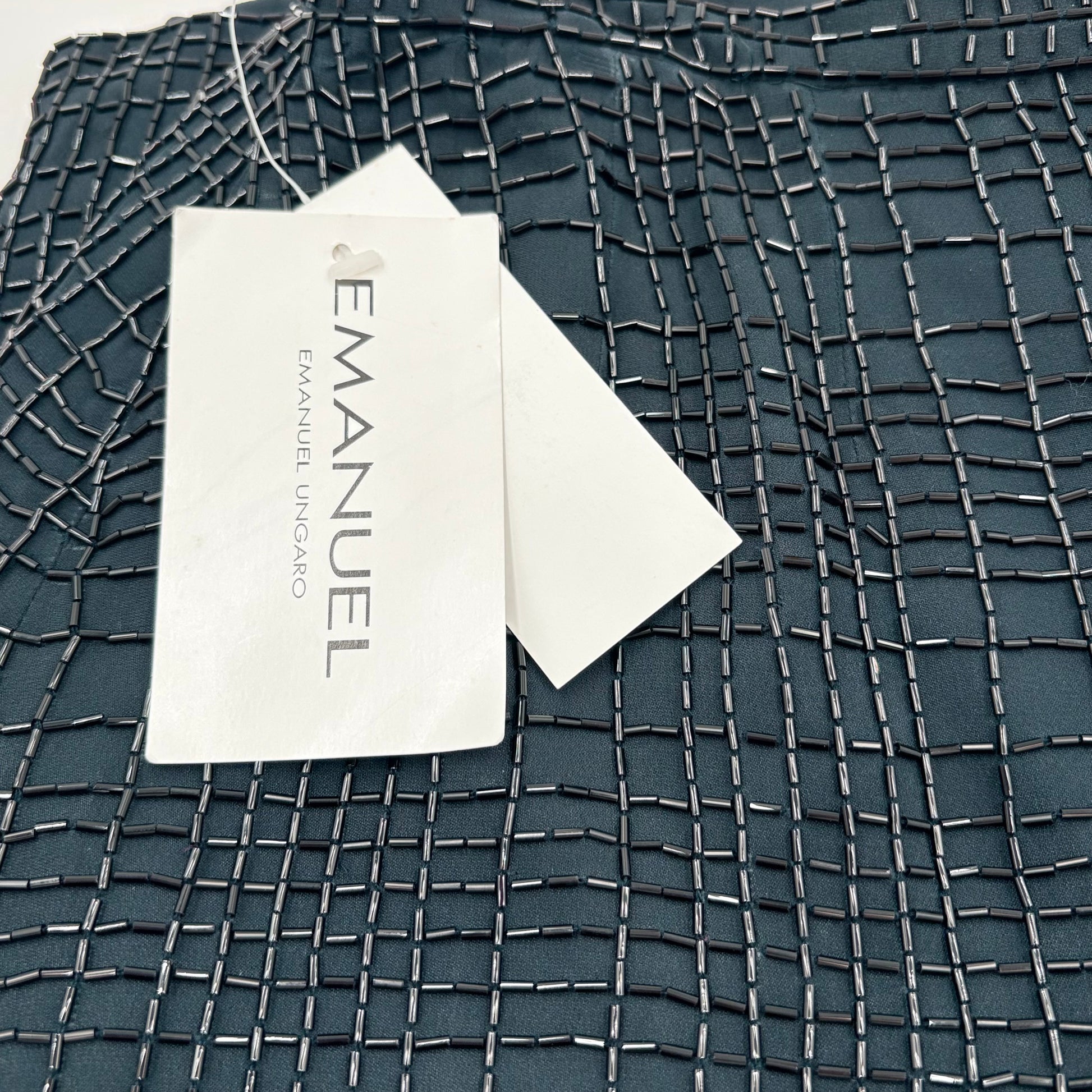 Emanuel Ungaro silk embellished black skirt in size 12, presented in preowned condition with original tags intact. This designer piece features luxurious silk construction enhanced with sophisticated embellishments, delivering timeless elegance suitable for elevated occasions or refined everyday wear. The pristine condition and retained original tags underscore its quality and collectibility. A versatile wardrobe essential from a renowned Italian fashion house, offering designer sophistication at an accessible price point.