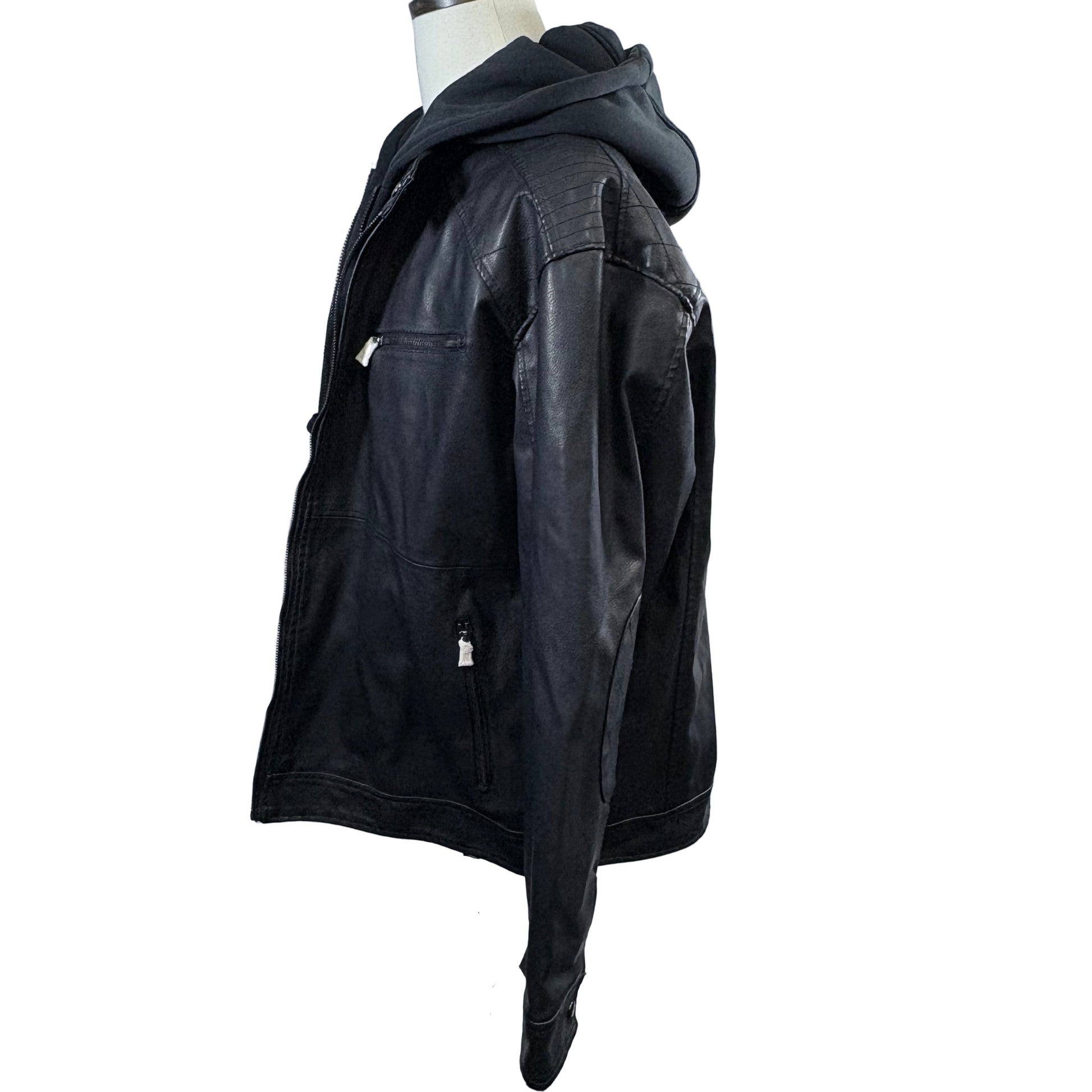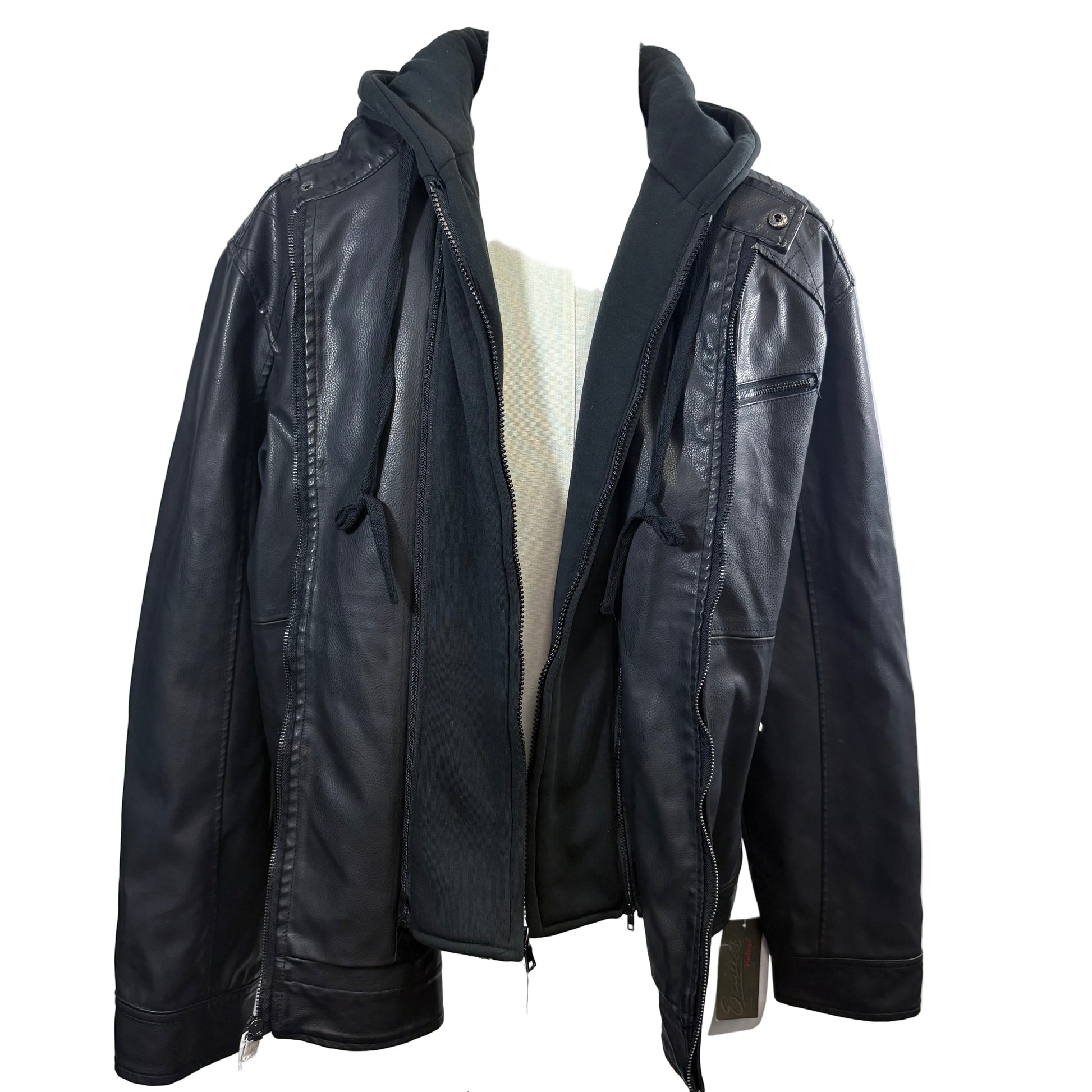 Excelled Faux leather jacket with removable hoodie NWT, size extra large