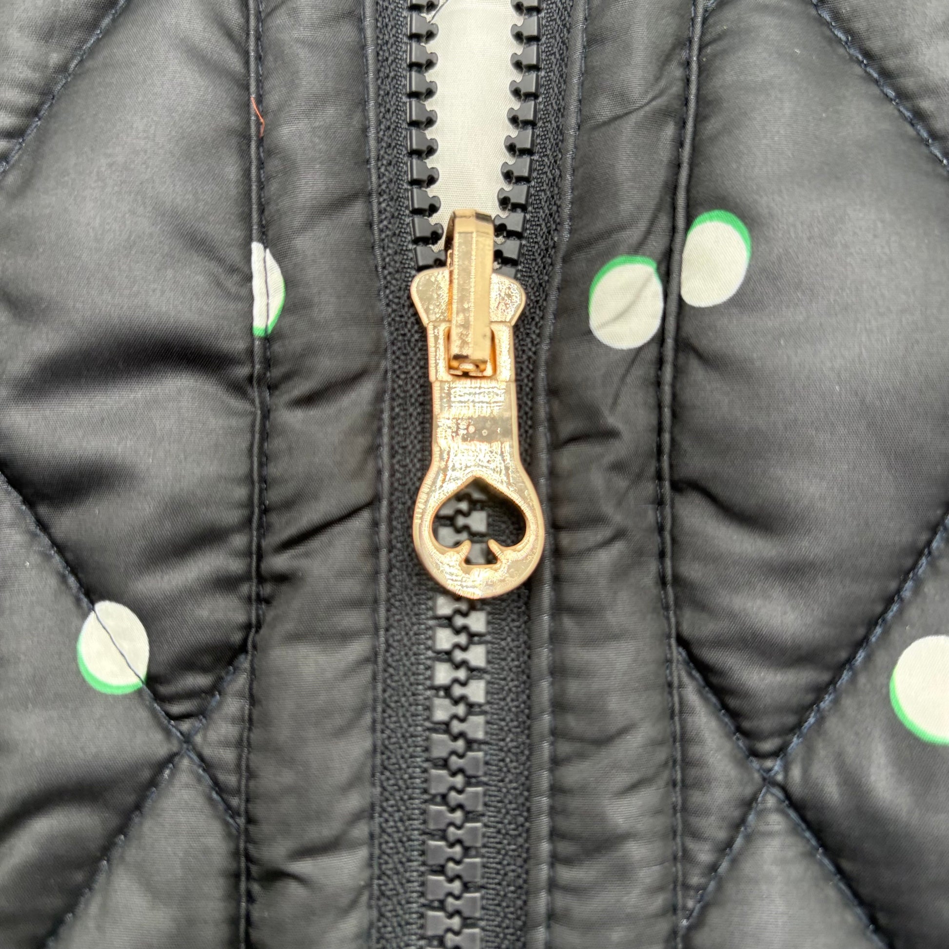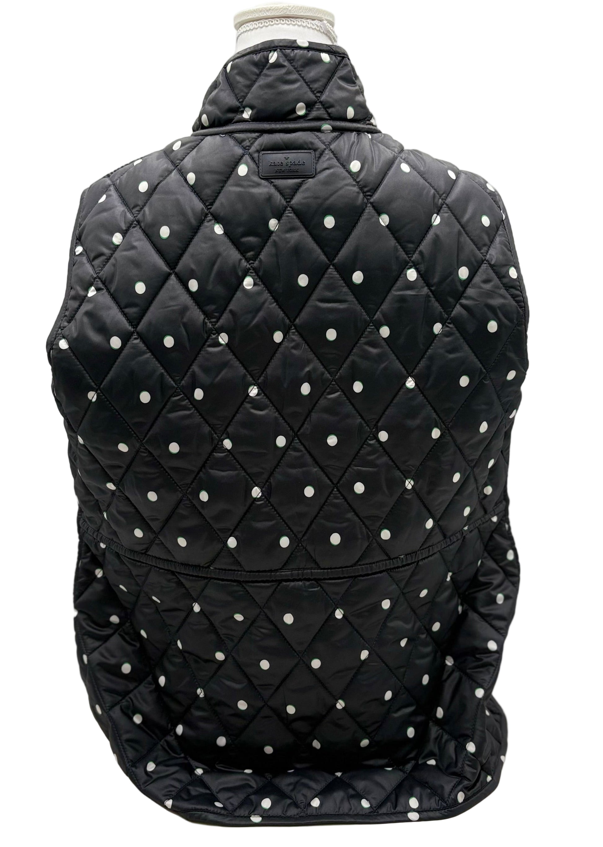 Kate Spade's polka dot vest delivers timeless sophistication with a playful edge. This pre-owned piece retains its original tags, ensuring authenticity and pristine condition. The classic polka dot pattern pairs effortlessly with neutral basics or bold separates, making it a versatile layering essential. Perfect for elevating casual outfits or adding dimension to professional ensembles, this vest showcases the designer's signature attention to detail and quality craftsmanship. An excellent investment for those seeking designer pieces with enduring style.