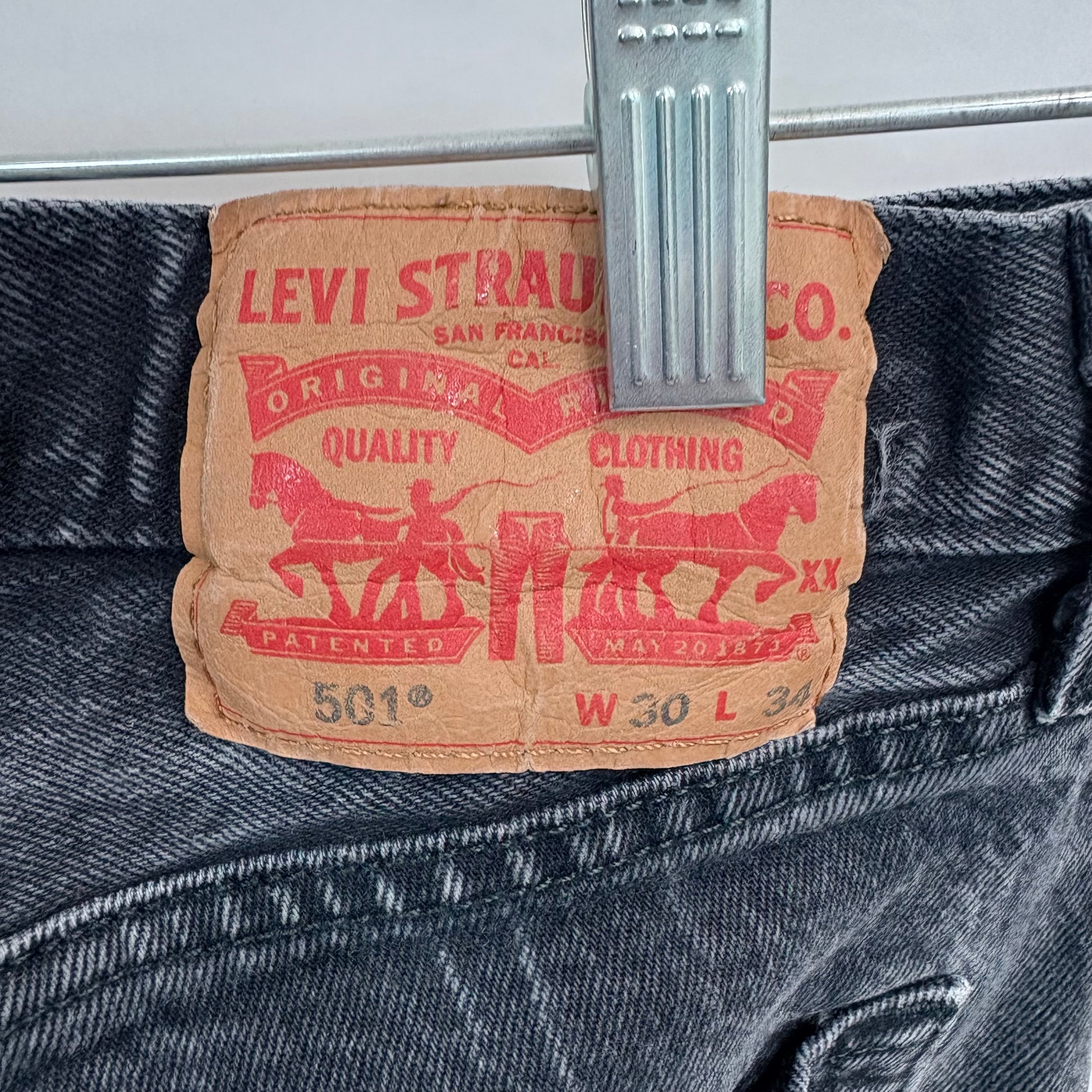 Classic Levi 501 button fly jeans in men's waist size 30". These iconic straight-leg jeans feature the signature button fly closure and durable denim construction that has defined the style for generations. Gently used condition with minimal wear, offering authentic vintage appeal and reliable comfort. A timeless wardrobe staple that pairs effortlessly with any casual or smart-casual look.