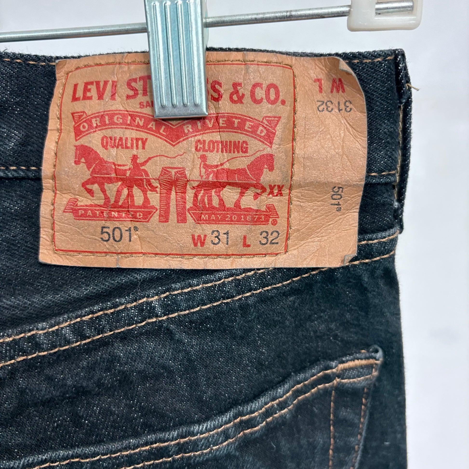 Iconic Levi 501 button fly jeans in a gently used condition, sized at 31" waist. These timeless denim staples feature the signature button fly closure and classic five-pocket construction that has defined casual menswear for generations. The 501 cut delivers a straight-leg silhouette with a comfortable mid-rise fit, making them versatile for everyday wear. As a pre-owned pair, they carry authentic character while offering exceptional value. Perfect for those seeking genuine vintage-inspired denim without the premium price tag.