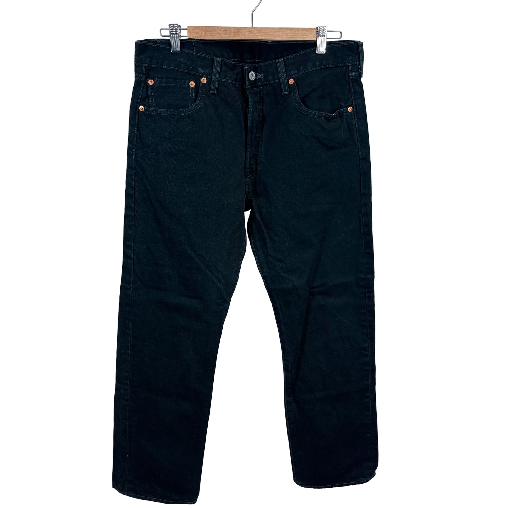 Levi 501 button fly jeans represent an iconic silhouette built on decades of denim heritage. This gently used pair in 34" waist maintains the classic straight-leg fit and authentic button fly closure that define the 501 standard. The sturdy 100% cotton construction delivers durability and develops character with wear, while the traditional five-pocket design provides practical functionality. A reliable choice for those seeking genuine vintage-inspired denim with proven longevity and timeless style appeal.