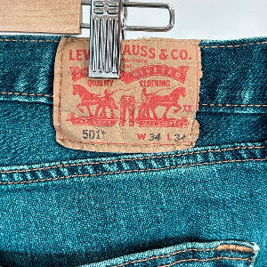 Classic Levi's 501 button fly jeans in a men's 34" waist, gently used and ready to wear. The iconic straight-leg silhouette and durable denim construction make these a timeless wardrobe staple. Known for their quality craftsmanship and authentic fit, 501s have remained a go-to choice for decades. This pre-owned pair retains its character while offering excellent value for those seeking genuine vintage-inspired denim.