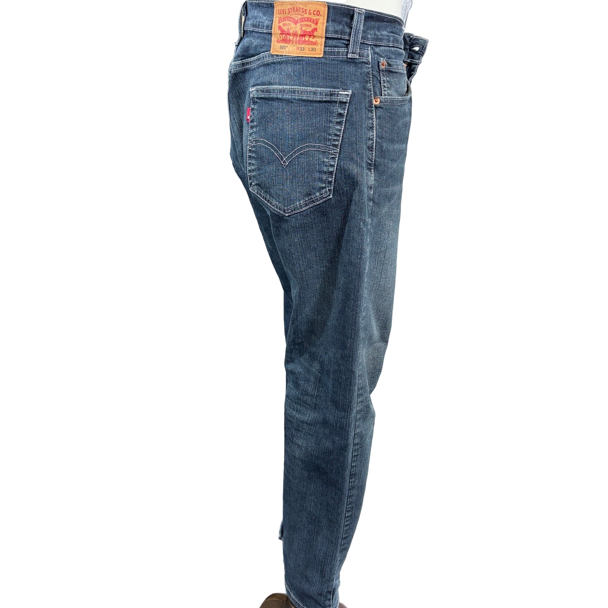 Classic Levi 505 men's jeans in gently used condition. These iconic straight-leg jeans deliver timeless style and reliable durability that Levi's is known for. The 505 cut offers a comfortable fit through the hip and thigh with a straight leg opening‚ versatile silhouette that works with virtually any casual wardrobe. Pre-owned but well-maintained, these jeans represent excellent value for those seeking authentic denim quality without the premium price tag.