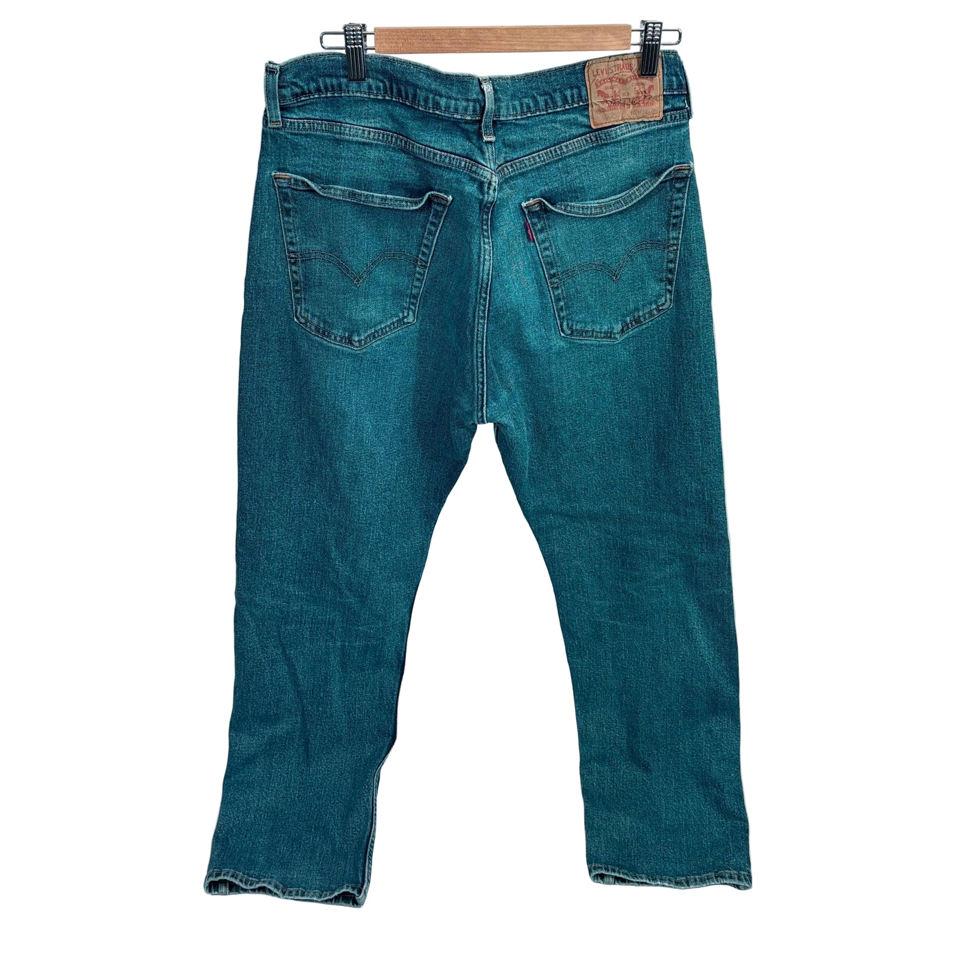 Levi 505 men's jeans represent a timeless choice for those seeking reliable denim construction and a comfortable fit. This gently used pair in waist size 36" delivers the classic straight-leg silhouette the 505 line is known for, with a mid-rise waist and traditional five-pocket styling. The durable denim fabric has been broken in for a softer feel while maintaining structural integrity. Ideal for everyday wear, these jeans pair effortlessly with casual or smart-casual outfits. A practical addition to any wardrobe seeking quality vintage or pre-owned denim.