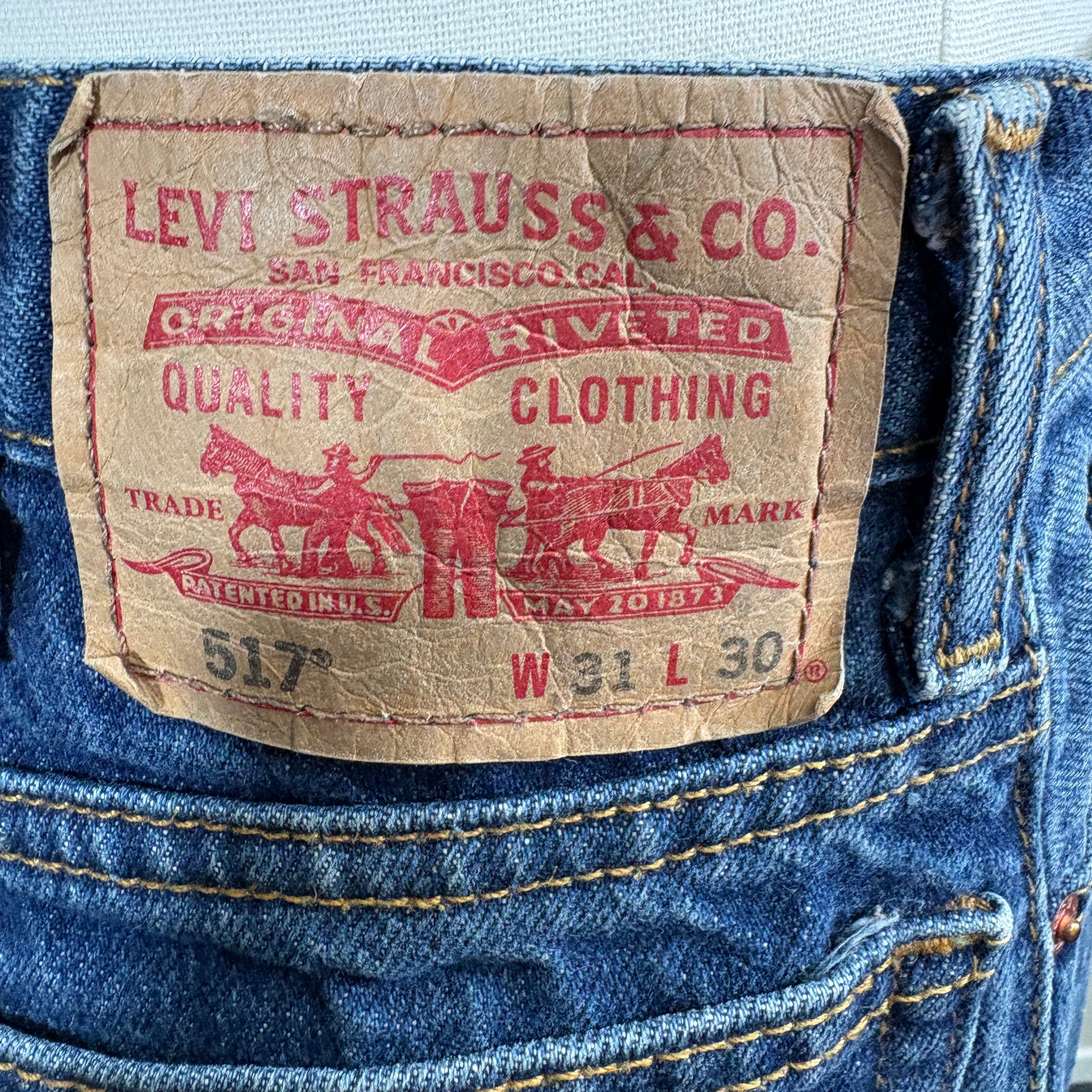 Levi's 517 jeans represent a classic fit that has remained a staple in men's denim for decades. This gently used pair offers the authentic construction and durability Levi's is known for, featuring a straight leg cut through the thigh and a comfortable fit at the waist. The 517 silhouette provides a timeless aesthetic that works across casual and smart-casual settings. With proper care, these jeans will continue to develop character and patina over time, making them a practical choice for the discerning dresser seeking quality vintage-inspired denim without the premium price point.