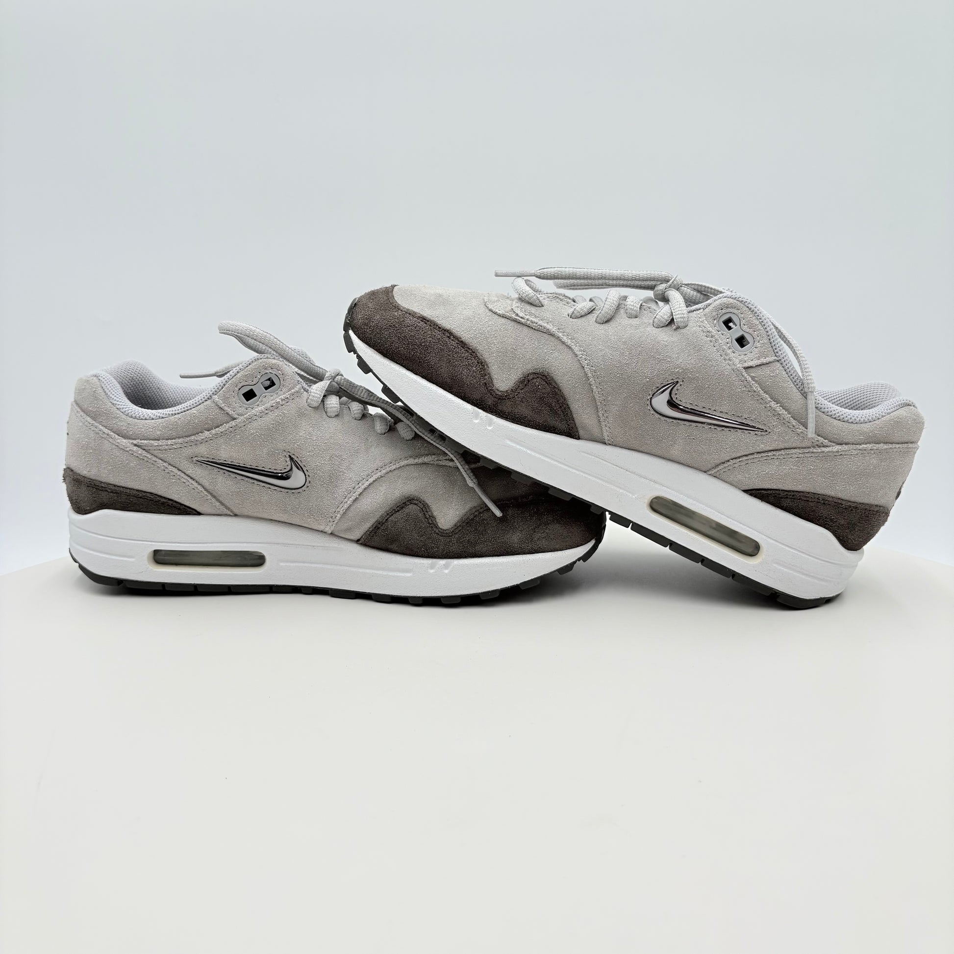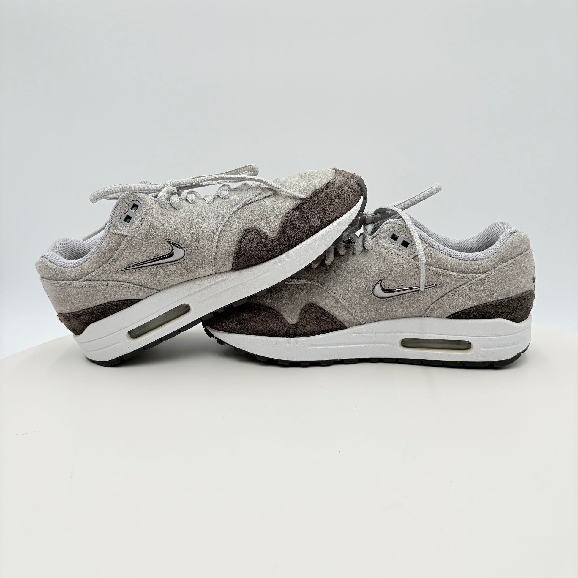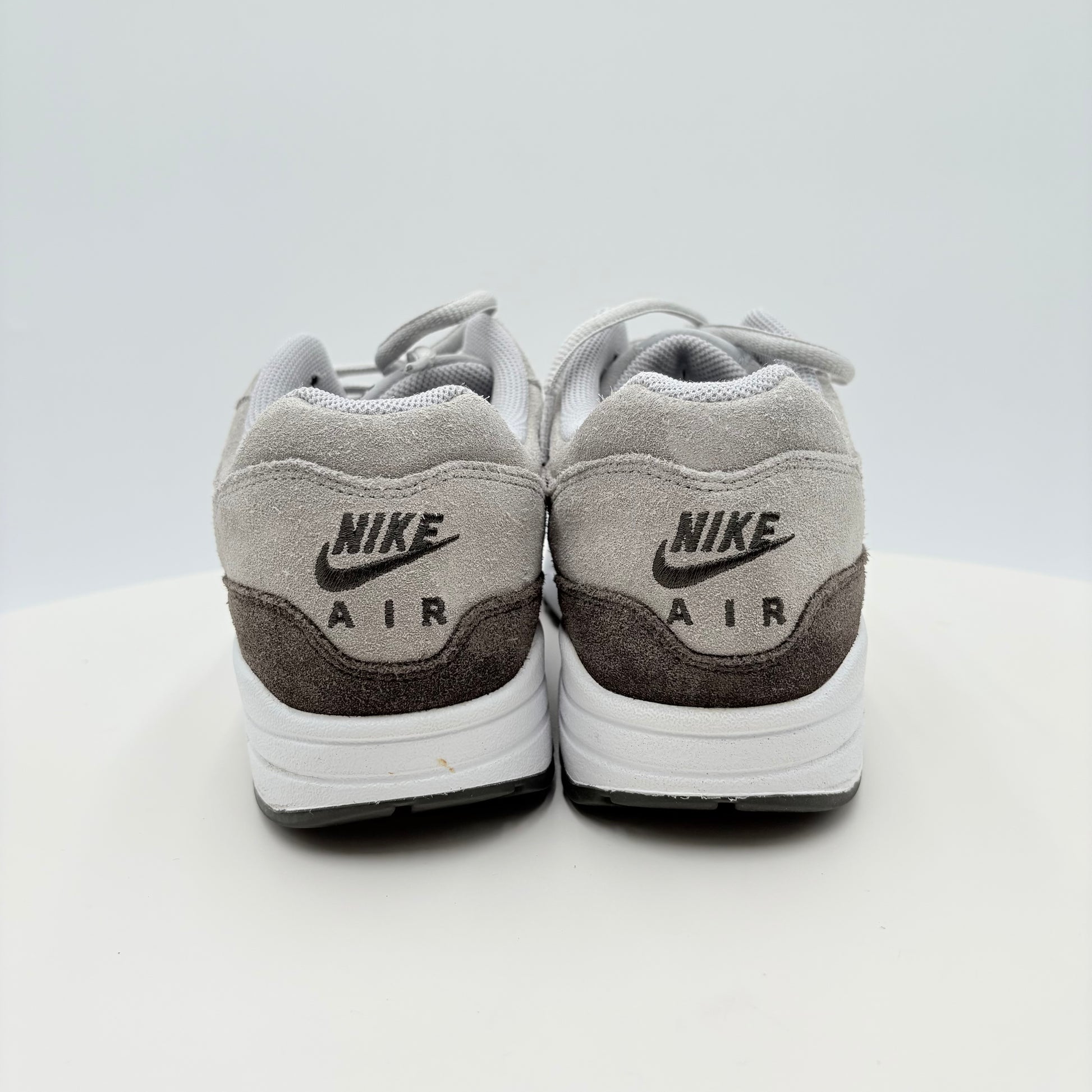 Nike Air gray/white/brown sneakers in gently used condition. This classic silhouette combines a sophisticated neutral palette—gray, white, and brown—making it versatile for casual wear or athletic pursuits. The mixed colorway adds visual interest while maintaining understated elegance. Ideal for those seeking authentic Nike quality at a pre-owned price point, these shoes retain their structural integrity and performance characteristics. Perfect for everyday comfort and style.
