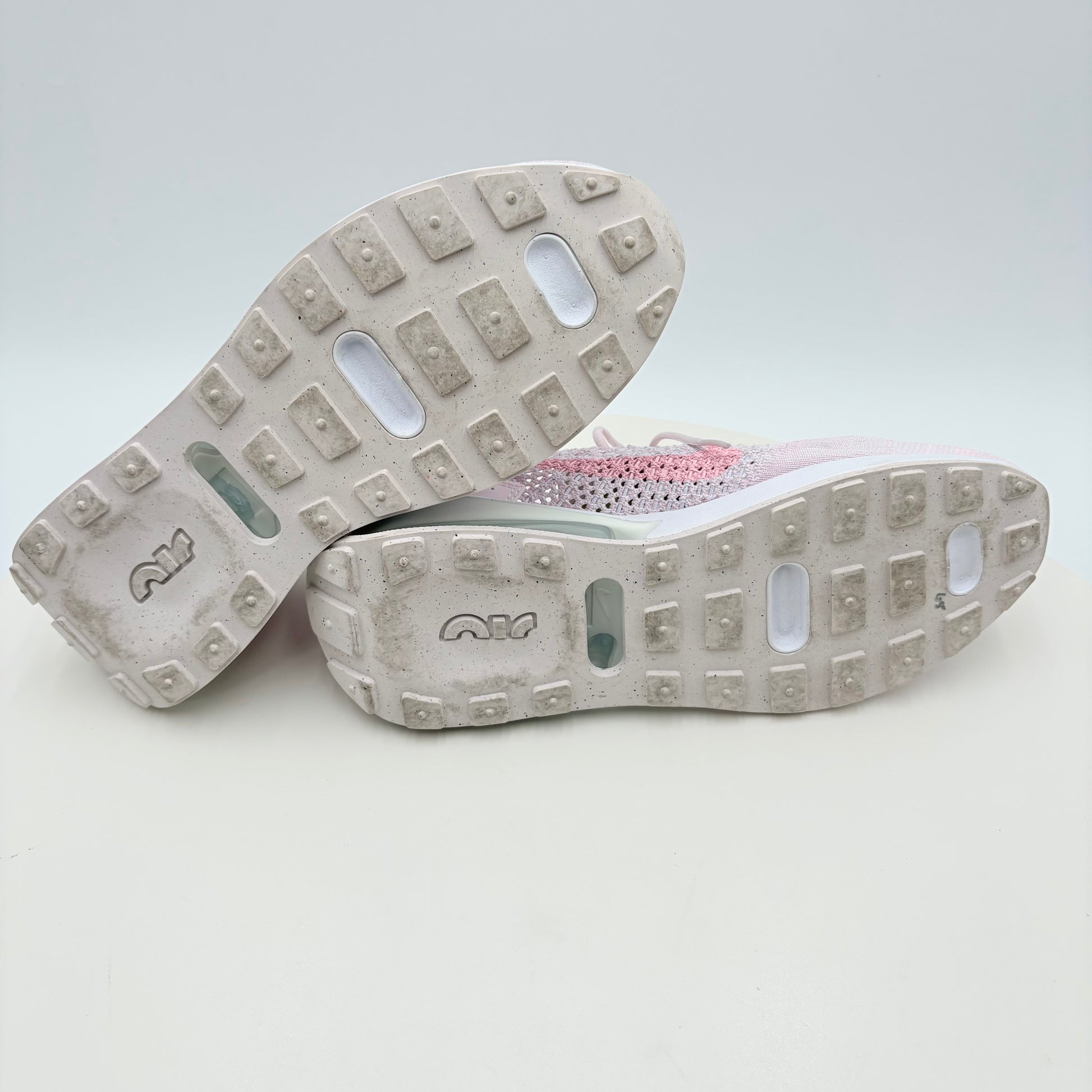 Nike Air Max Flyknit Racer Soft Pink FJ4577-100 Experience lightweight performance in this gently used Nike Air Max Flyknit Racer. The Soft Pink colorway (FJ4577-100) combines Flyknit's responsive, breathable upper with Max Air cushioning for all-day comfort. Engineered for runners seeking a balance of speed and support, this model features a streamlined silhouette and premium construction. In excellent pre-owned condition, it delivers the same responsive ride and iconic design at a great value. Perfect for both training runs and casual wear.