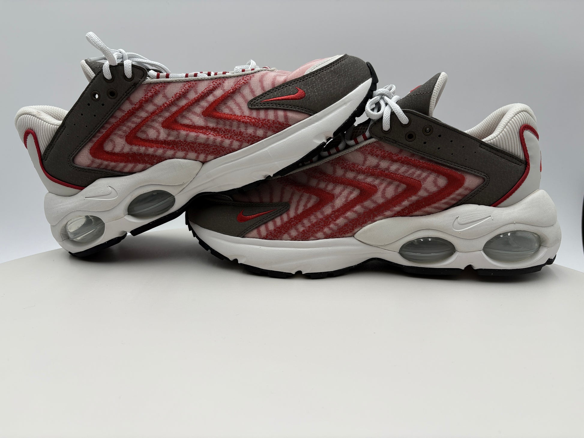 The Nike Air Max TW Red Clay (DQ 3984-002), gently used, features robust Air Max cushioning for superior comfort and shock absorption. Its distinctive Red Clay colorway adds a bold, athletic aesthetic, while the durable outsole provides excellent traction and stability. Designed for performance and style, this pair is ideal for enthusiasts seeking proven Nike technology combined with a standout look.
