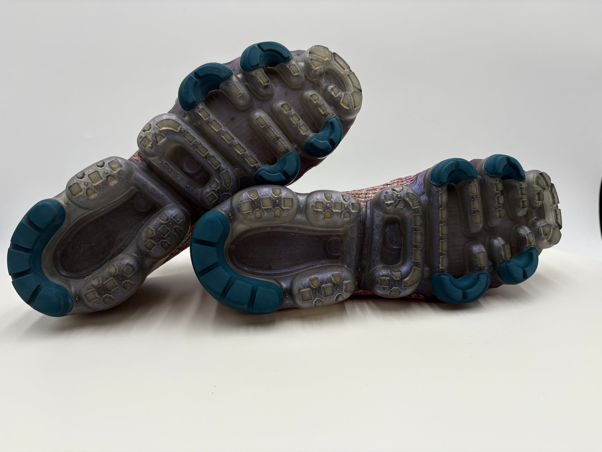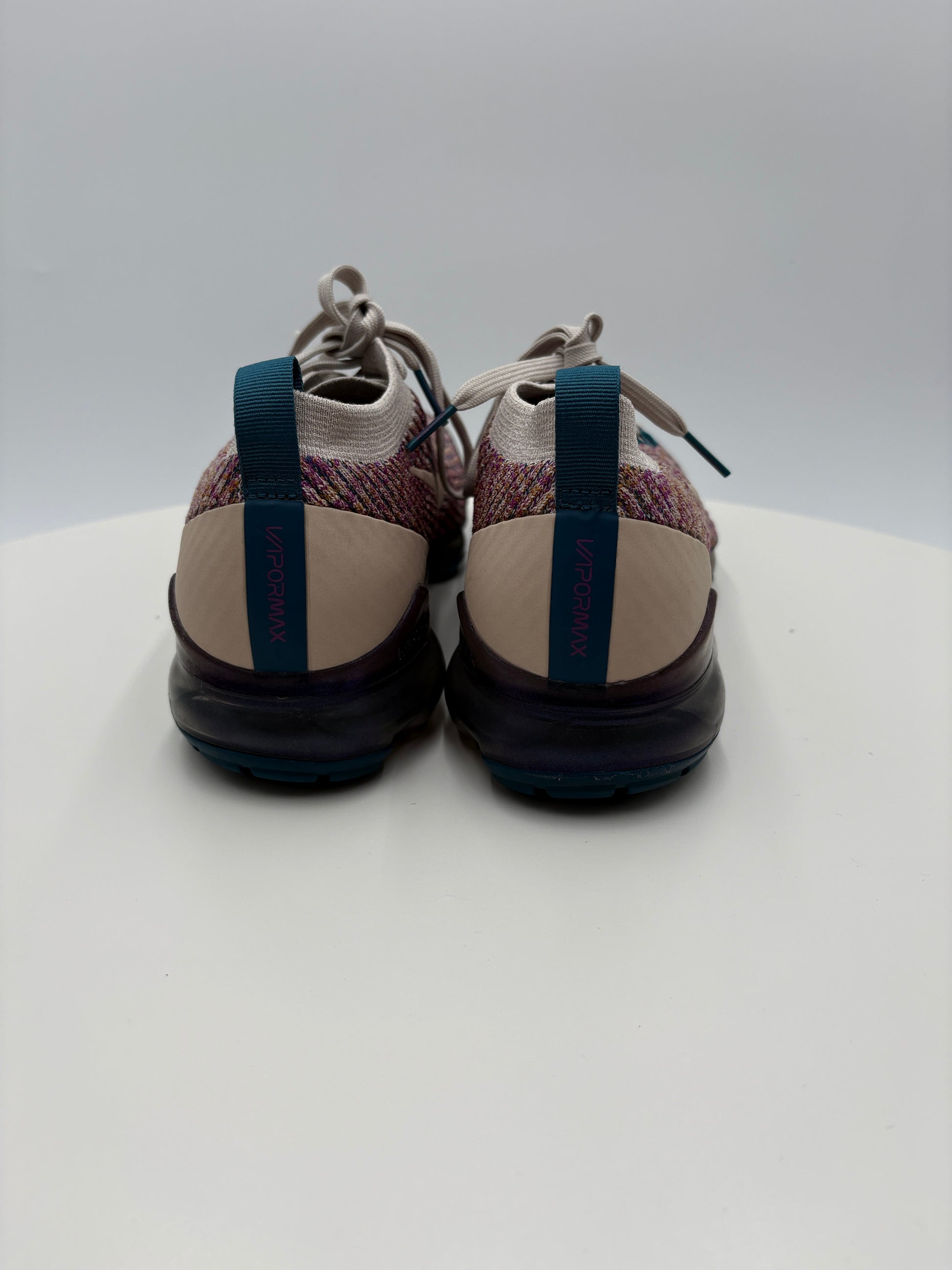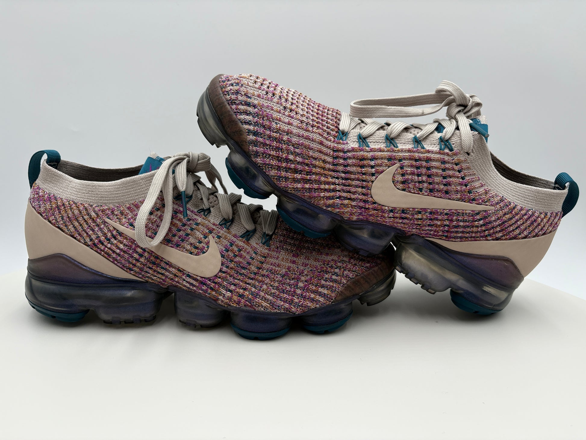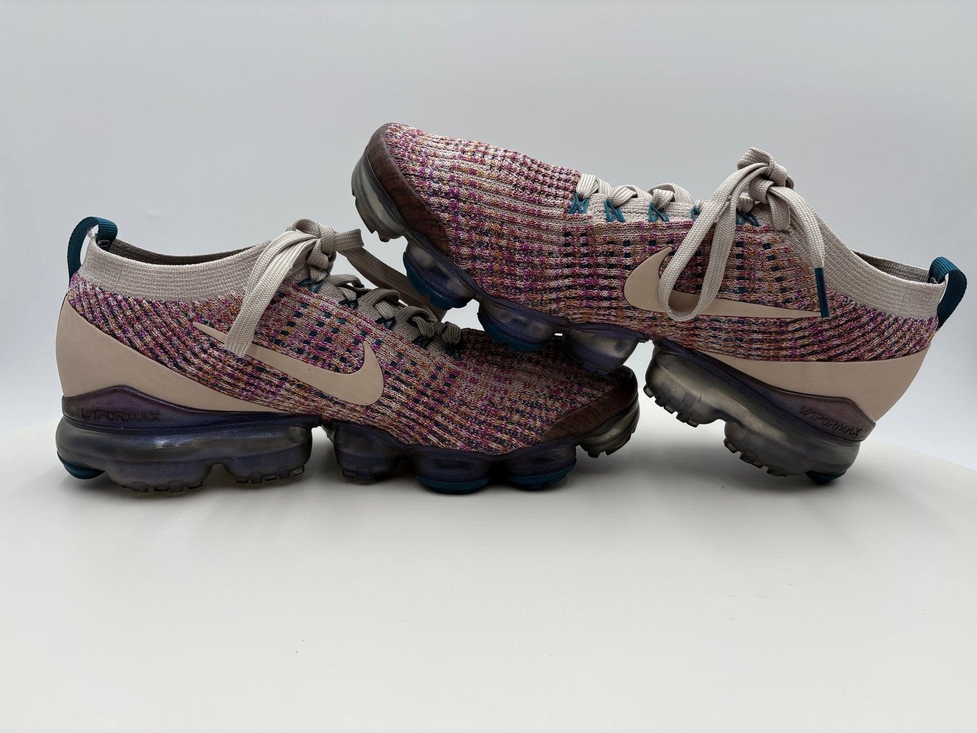 Experience advanced cushioning and lightweight breathability with the Nike Air Vapor Max FlyKnit 3 in Desert Sand and Vivid Purple. Featuring a flexible FlyKnit upper for a secure fit and visible Air Max units that provide responsive impact protection, these gently used sneakers combine style and performance seamlessly. Ideal for athletes and sneaker enthusiasts seeking comfort without compromising bold design.