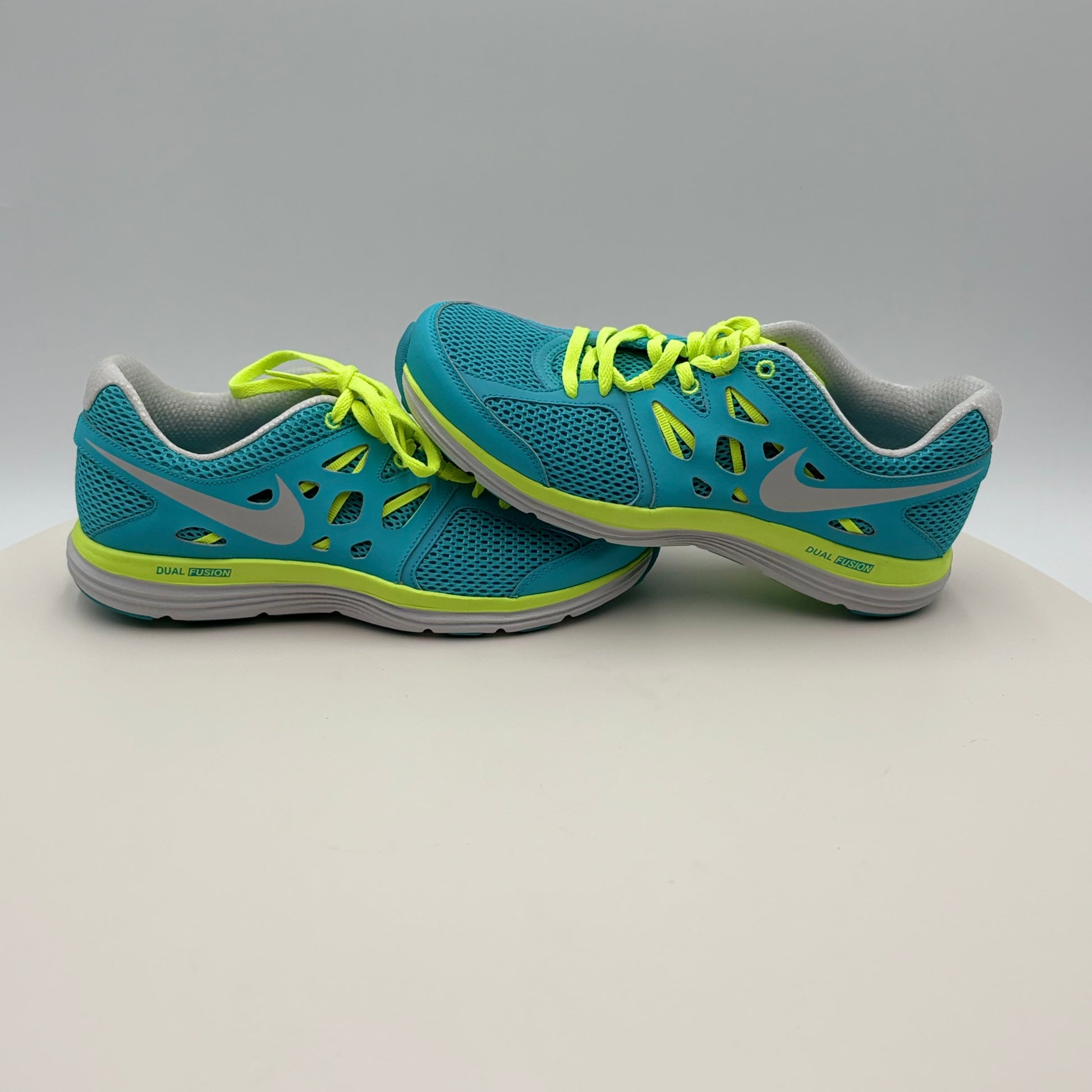 Nike Dual Fusion Lite sneakers deliver responsive cushioning and lightweight performance in a pre-owned pair that looks and performs like new. Originally engineered for runners seeking comfort without bulk, these sneakers feature dual-density foam technology that adapts to your stride while maintaining durability through everyday wear. The pristine condition ensures you're getting premium footwear quality at a fraction of the original price—ideal for athletes and casual wearers who value both performance and value.