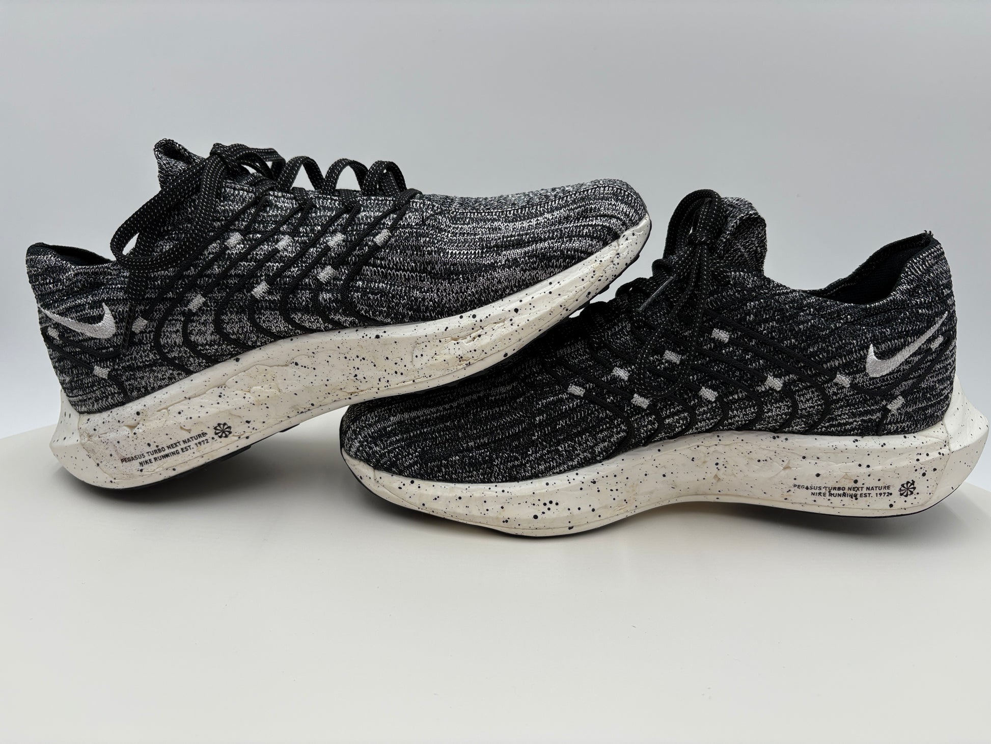 The Nike Pegasus Turbo Flyknit offers lightweight responsiveness with its innovative Flyknit upper and Zoom Turbo cushioning. This gently used pair maintains its performance-driven design, delivering breathable support and energy return for runners seeking speed and comfort. Ideal for those who value advanced technology in their footwear while reducing environmental impact through reuse.