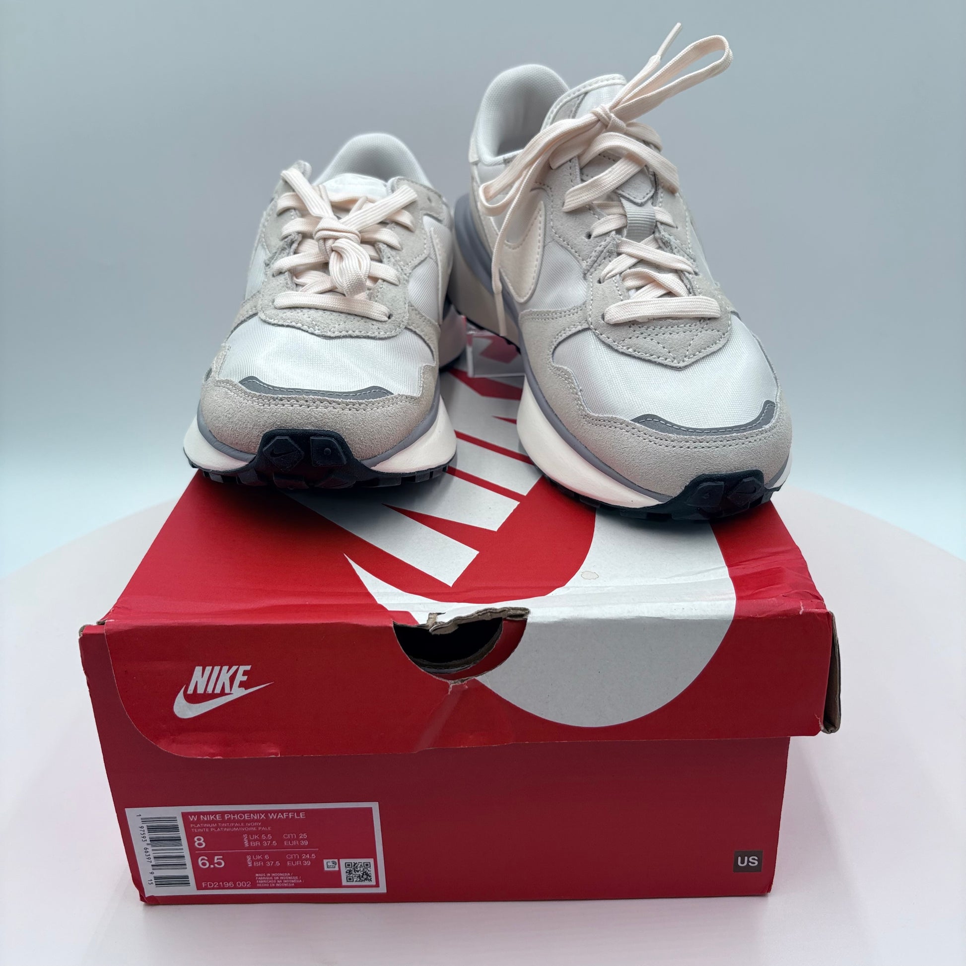 Nike Phoenix Waffle Platinum Tint Pale Ivory—deadstock condition, never worn, still sealed in its original box. This is the sneaker that sat in someone's collection waiting for the perfect moment. Platinum tint paired with pale ivory creates a subtle, sophisticated colorway that works harder than it looks. Pre-owned means you're getting premium footwear without the premium markup. Grab a piece of Nike's waffle legacy before someone else does.