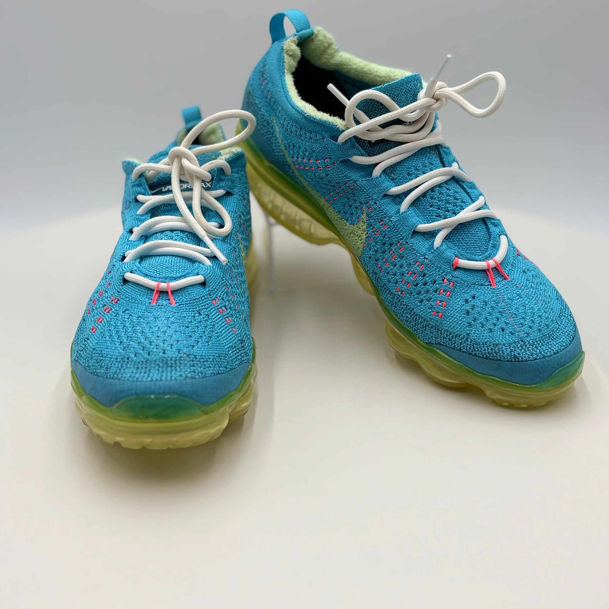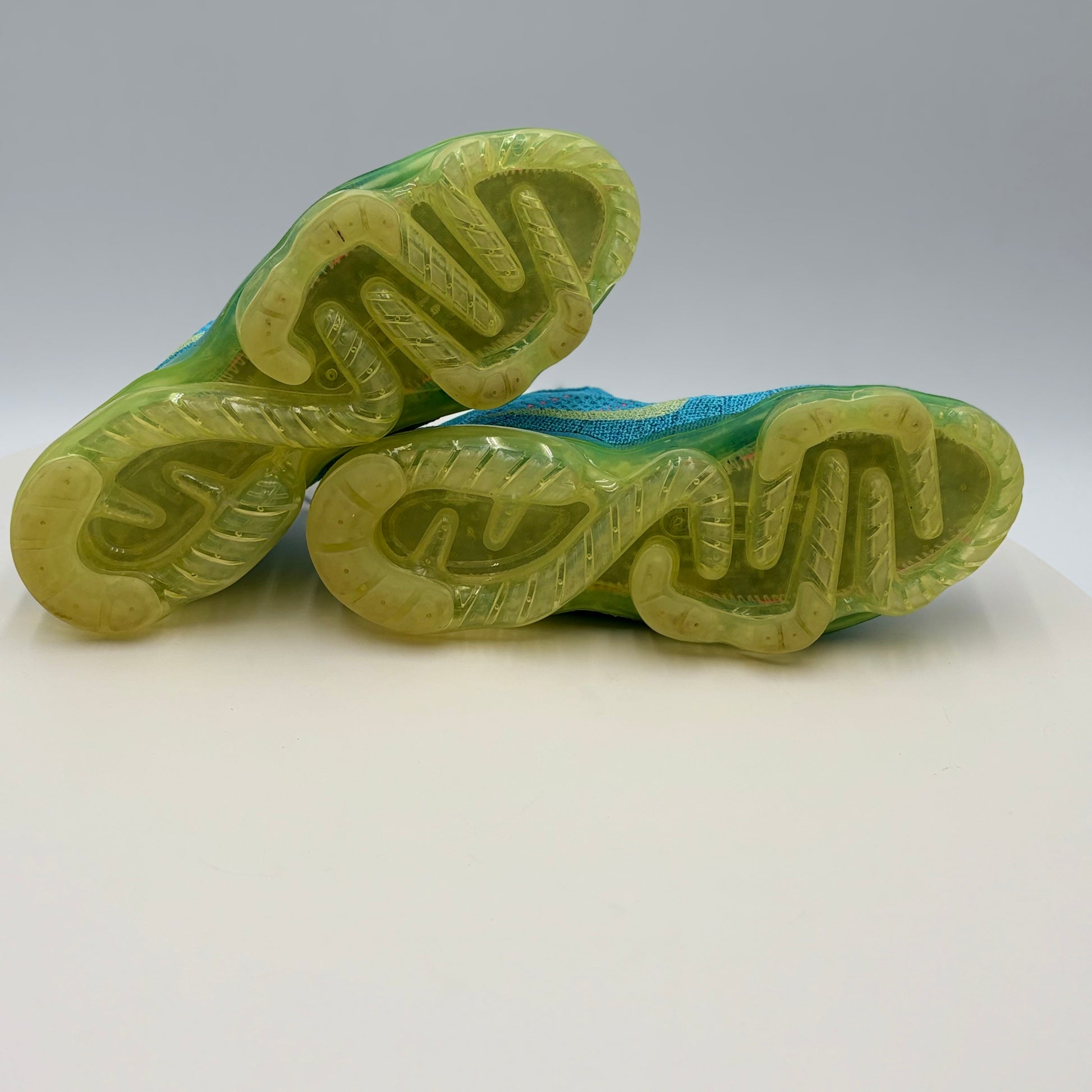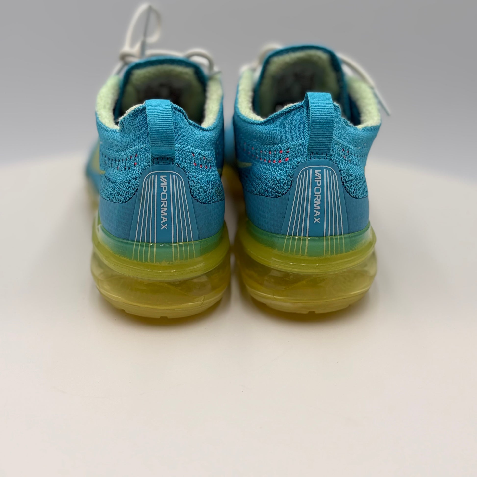 Nike Vapor Max Baltic Blue Citron Tint (DV1678-400) in gently used condition. This iconic silhouette combines responsive cushioning with a striking colorway featuring cool Baltic blue tones accented by vibrant citron highlights. The Vapor Max's signature visible air unit delivers comfort for all-day wear, while the premium construction ensures durability. Perfect for collectors or those seeking a classic Nike performance shoe with distinctive style at a pre-owned price point.