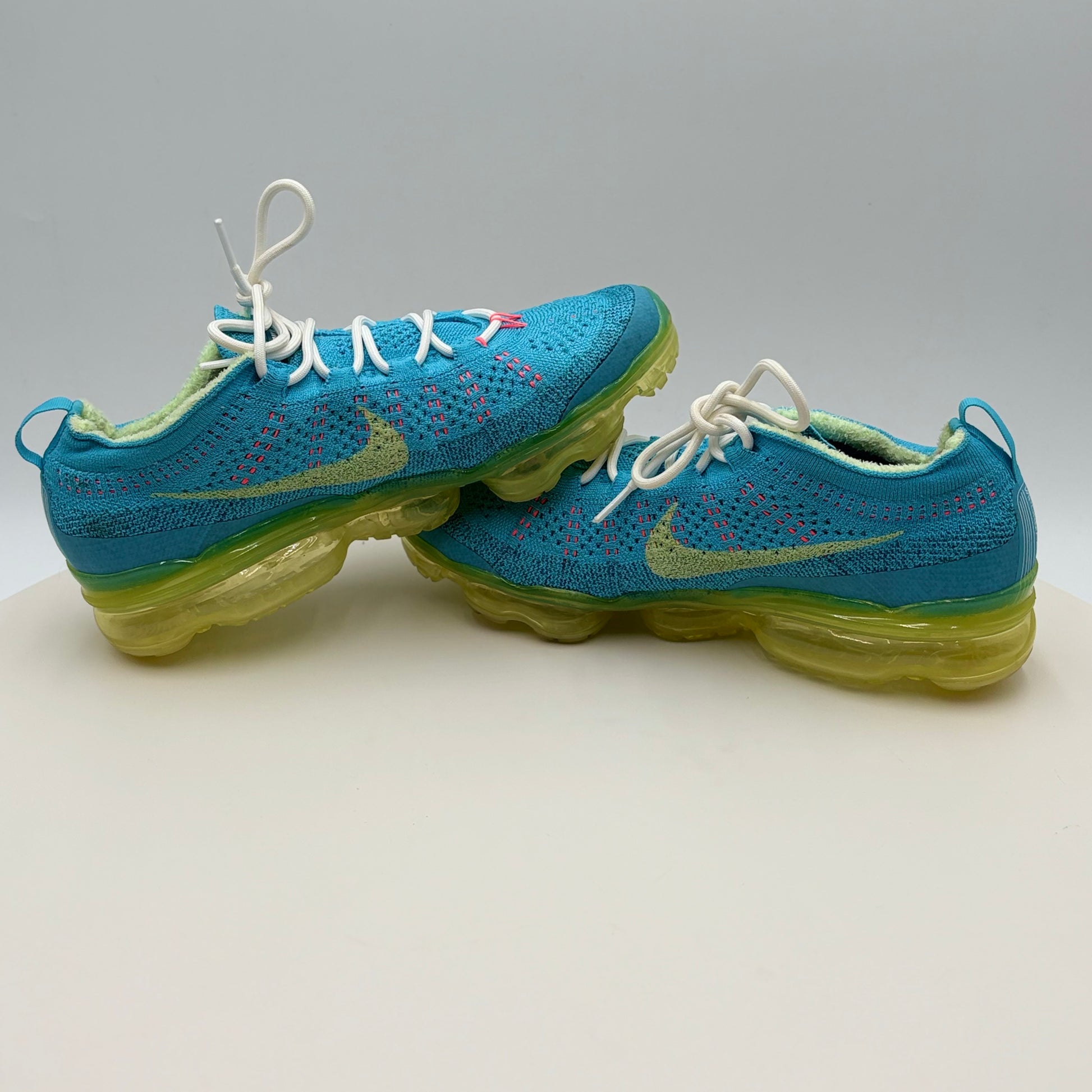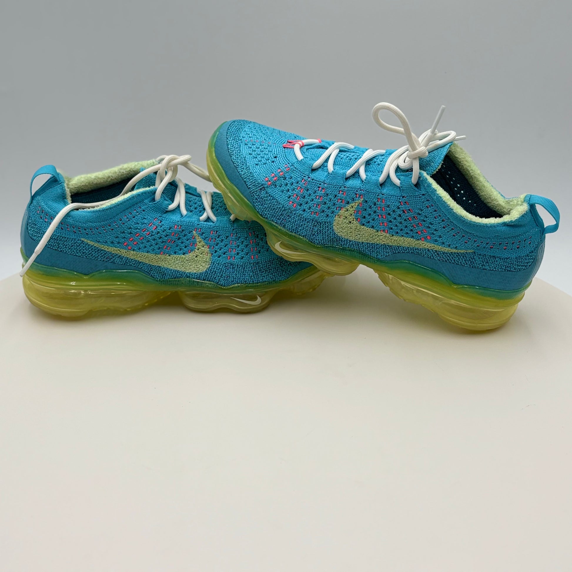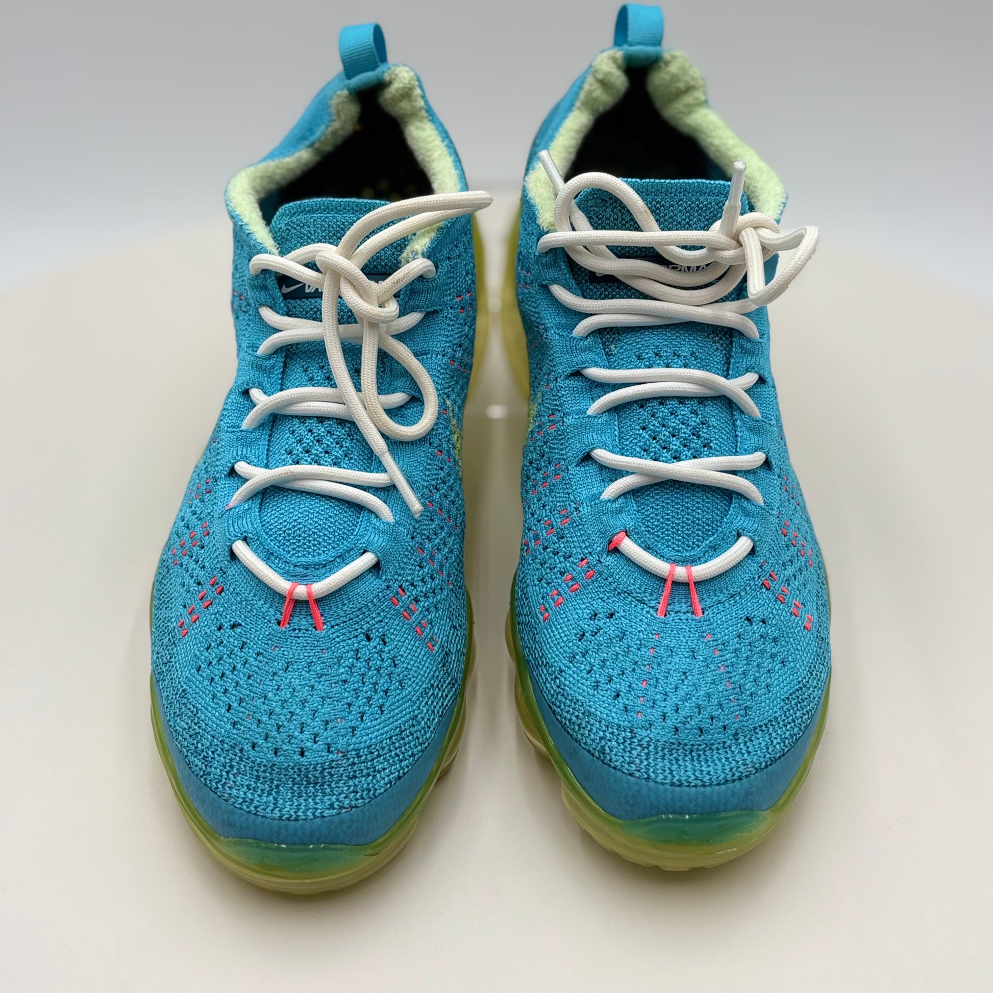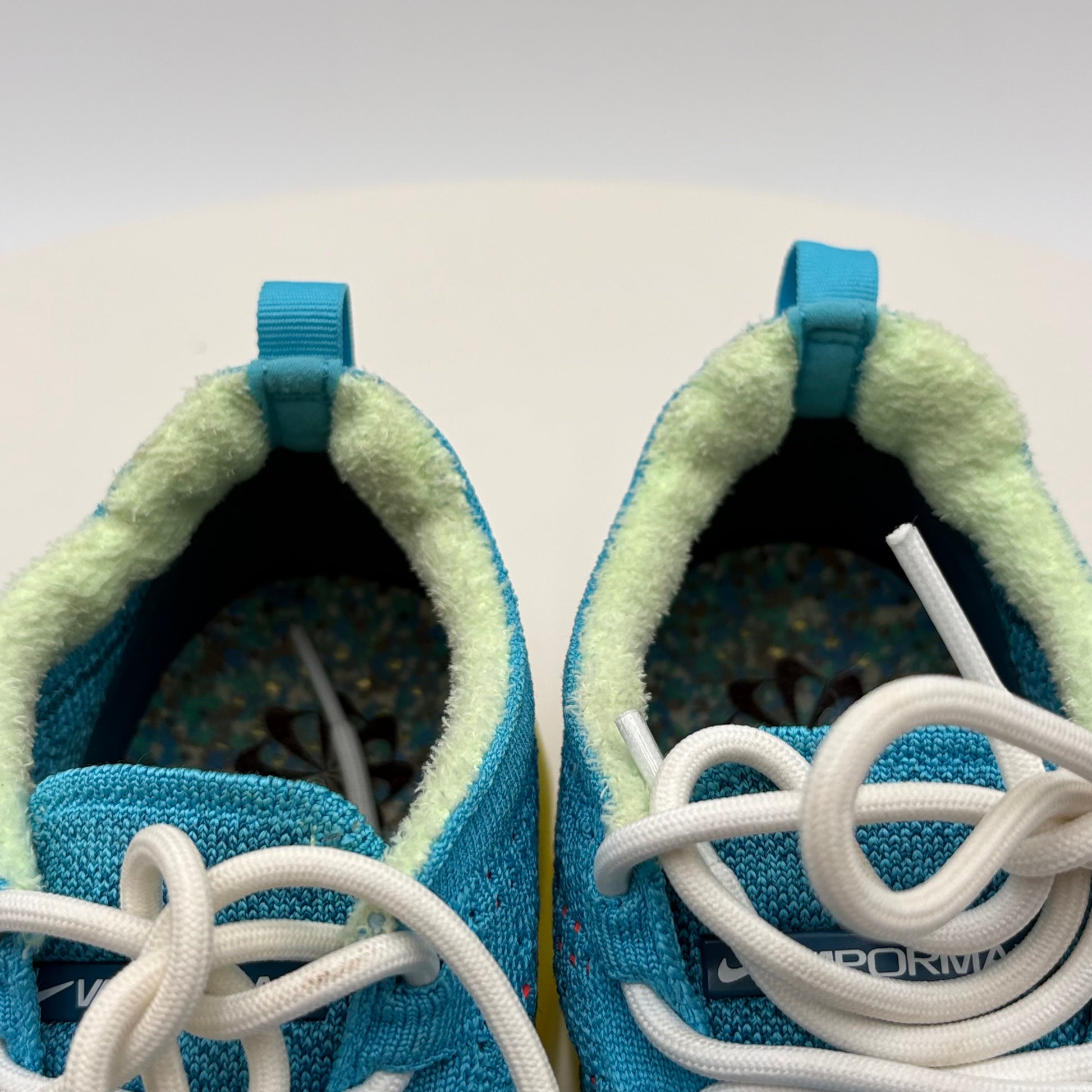 Nike Vapor Max Baltic Blue Citron Tint (DV1678-400) in gently used condition. This iconic silhouette combines responsive cushioning with a striking colorway featuring cool Baltic blue tones accented by vibrant citron highlights. The Vapor Max's signature visible air unit delivers comfort for all-day wear, while the premium construction ensures durability. Perfect for collectors or those seeking a classic Nike performance shoe with distinctive style at a pre-owned price point.