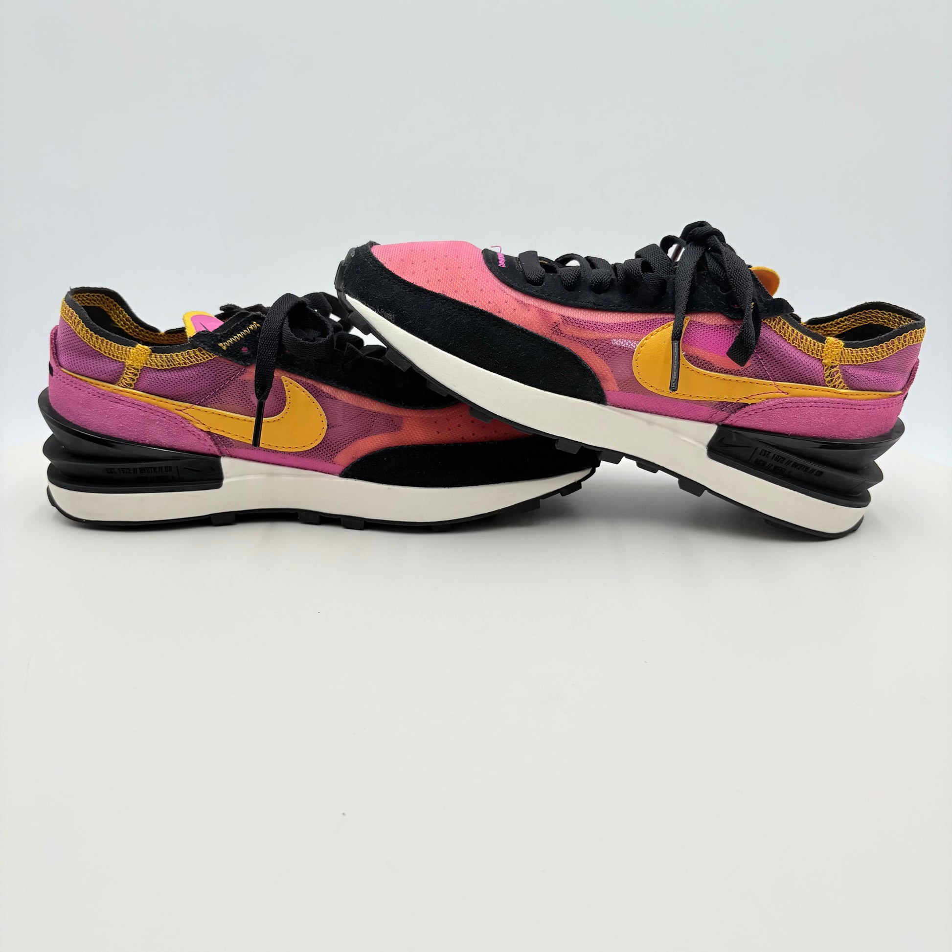Nike Waffle One sneakers in striking Active Fuchia deliver vintage-inspired style with modern performance. This gently used pair features the iconic waffle sole for responsive cushioning and traction, paired with a breathable upper designed for all-day comfort. The bold fuchsia colorway makes a statement while remaining versatile enough for casual wear or light athletic activities. A smart choice for sneaker enthusiasts seeking authentic Nike heritage at a pre-owned value.