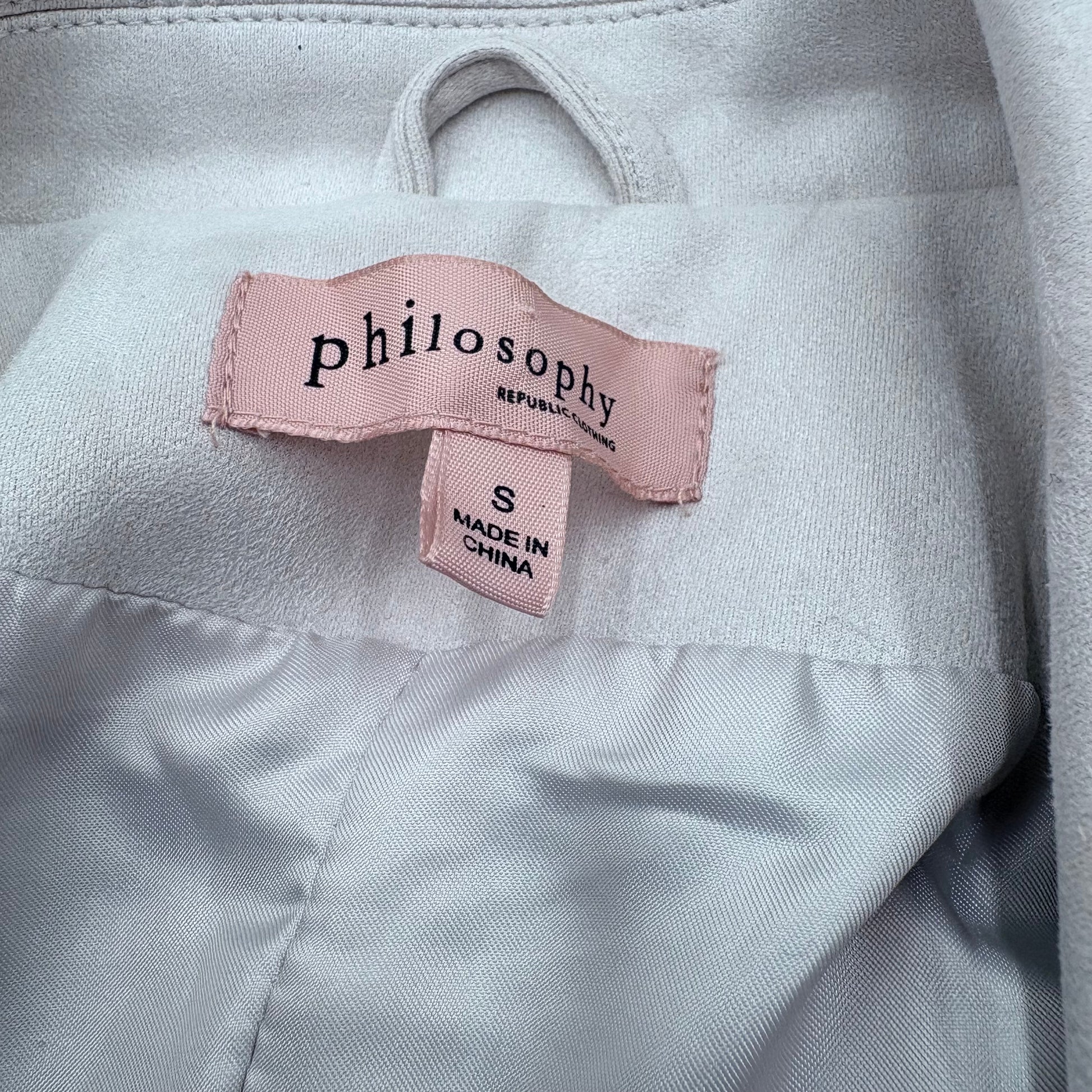 Crafted from premium faux leather, this Philosophy jacket delivers that coveted edge without the guilt. The long sleeves and structured silhouette work overtime—dress it up over a slip dress for evening intrigue, or throw it on with jeans for instant cool-girl credibility. Gently used means it's already broken in, already cool, and ready to become your go-to layer. Sustainable style that actually looks expensive? Now that's philosophy we can get behind.