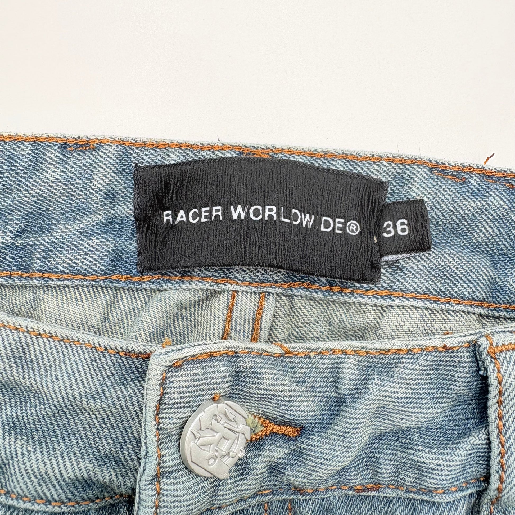 Racer Worldwide wide leg jeans deliver timeless style with a relaxed, contemporary silhouette. This size 36 pair showcases the brand's signature craftsmanship with quality denim construction designed to move with you. Gently used, these jeans retain their shape and color while offering the broken-in comfort of a well-loved staple. Perfect for building versatile outfits, from casual weekends to elevated streetwear looks. A smart choice for denim enthusiasts seeking authentic pieces with character.