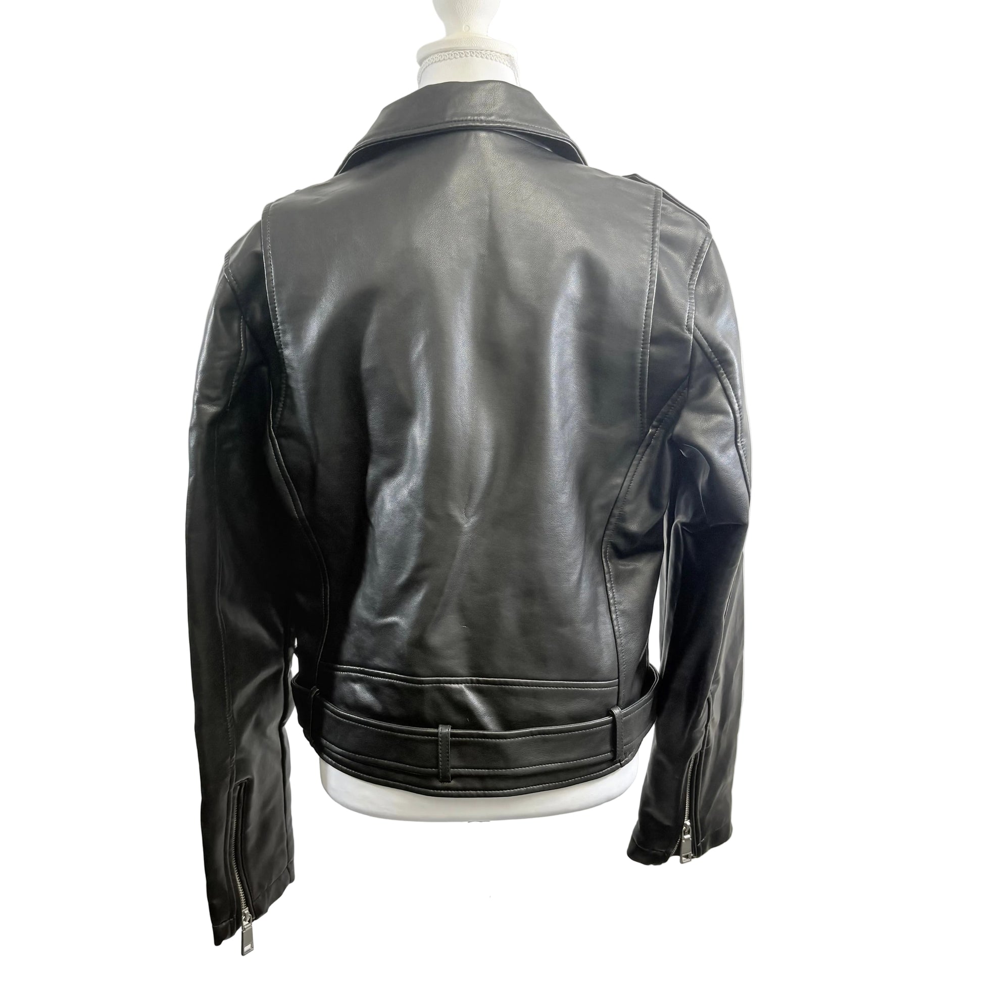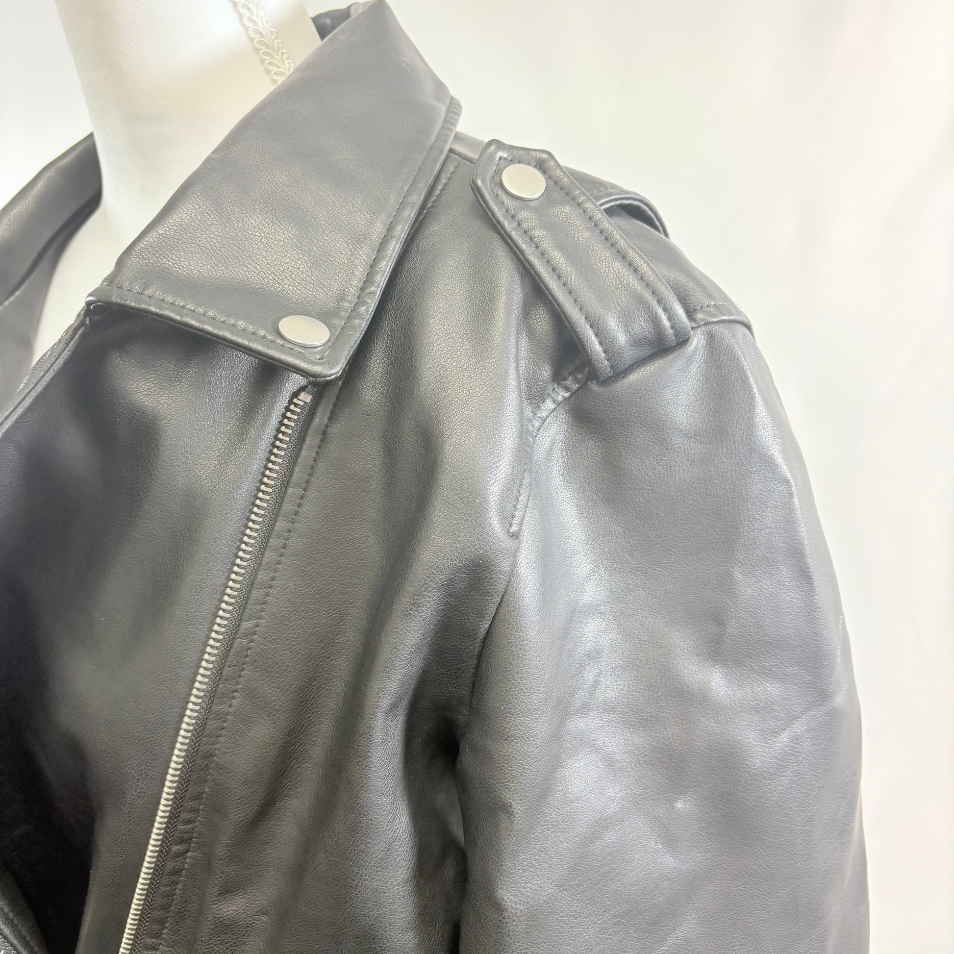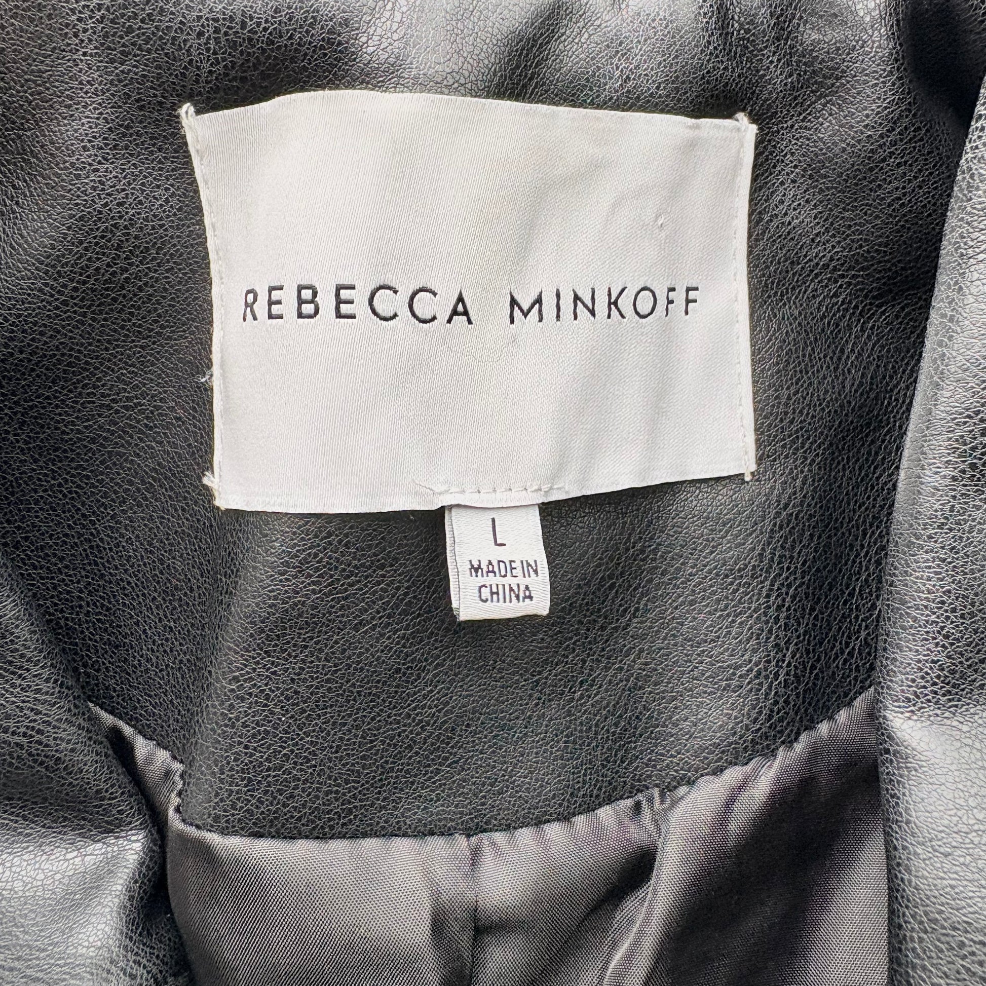 This Rebecca Minkoff biker-style leather jacket in size large combines edgy sophistication with timeless appeal. Crafted from quality leather, it features the signature moto silhouette with structured shoulders and classic hardware detailing. Gently used, this piece retains its supple texture and rich finish while offering exceptional value. Perfect for layering over casual or dressed-up looks, it transitions seamlessly from day to evening wear. An investment-worthy staple that elevates any wardrobe with understated luxury and authentic biker attitude.