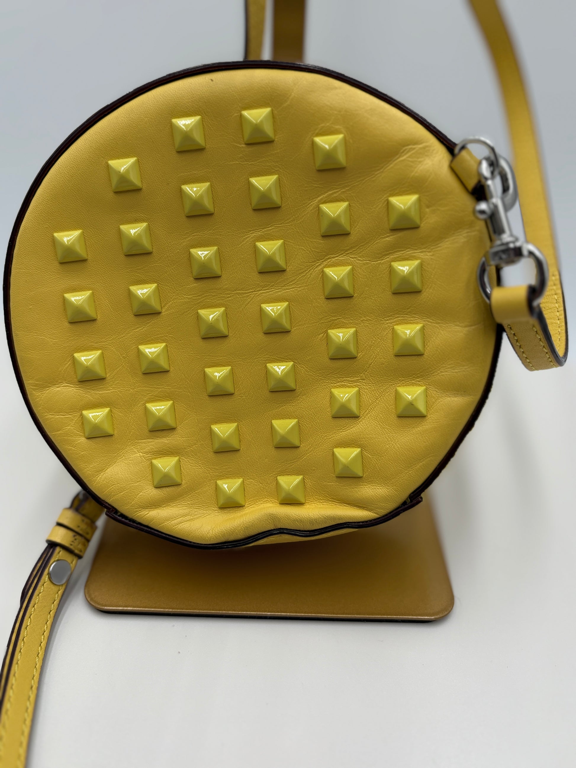 Elevate your everyday carry with this gently used Rebecca Minkoff crossbody purse in a striking yellow hue. The rounded silhouette offers a modern take on classic design, while the crossbody strap provides hands-free convenience for on-the-go styling. Crafted with the quality construction Rebecca Minkoff is known for, this piece delivers both sophistication and practicality. Perfect for those seeking designer appeal with a sustainable choice, this pre-loved accessory transitions seamlessly from day to evening.