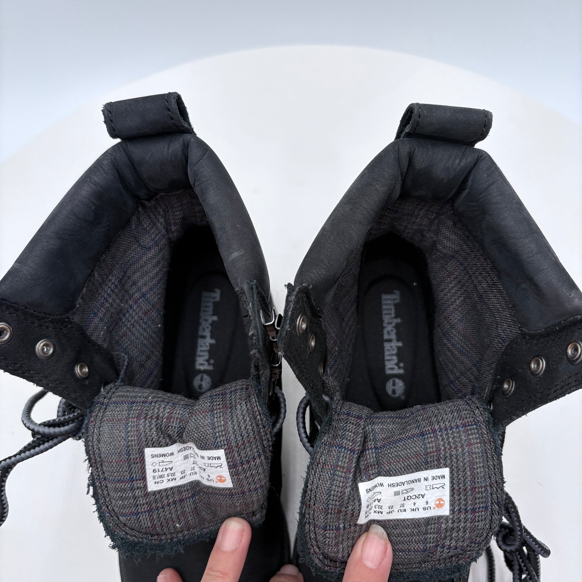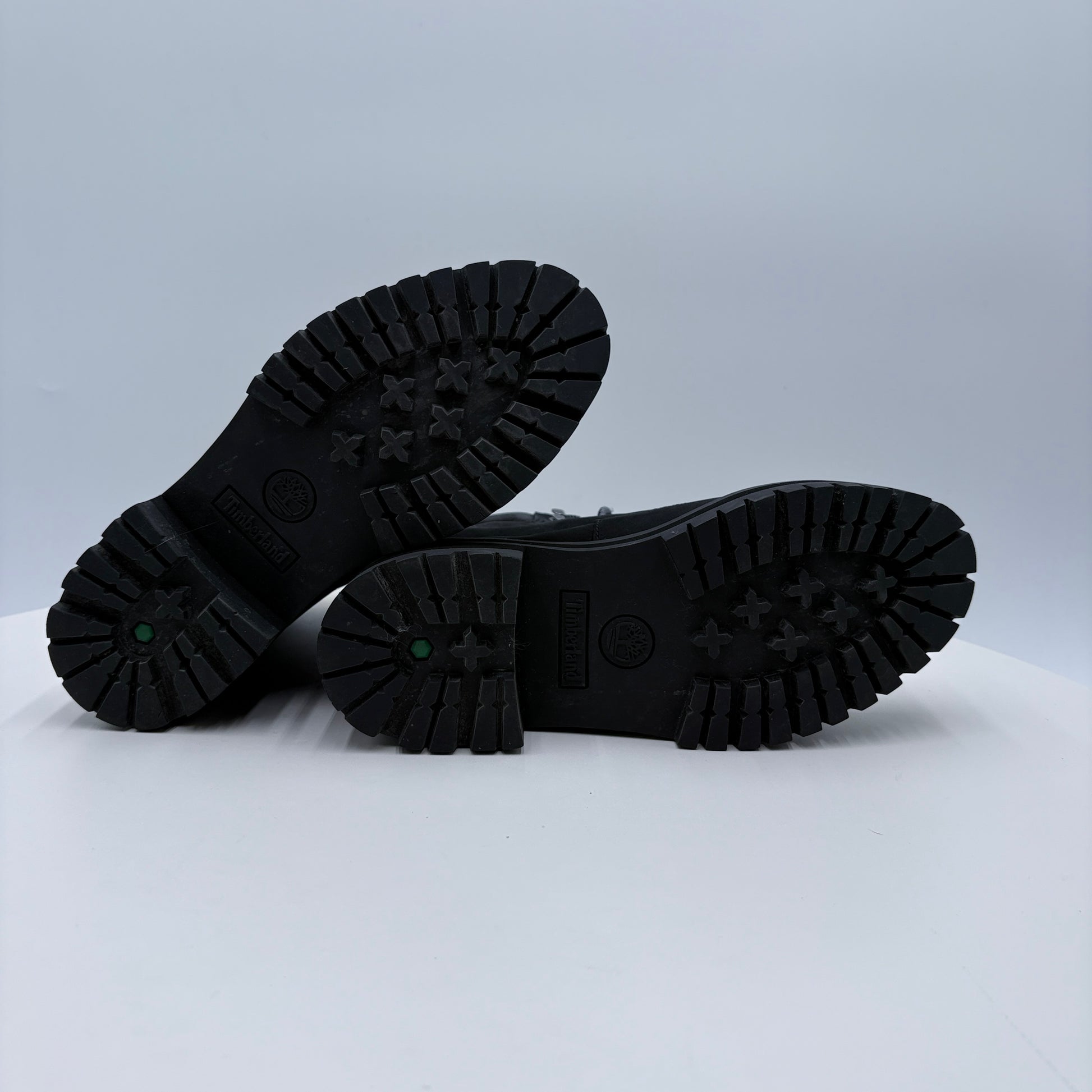 Timberland Women's Black Boots offer timeless durability and style in a gently used condition. These iconic boots feature the brand's signature waterproof construction and sturdy leather upper, designed to withstand demanding wear while maintaining their classic aesthetic. The cushioned insole and reliable traction sole provide comfort for everyday adventures. Perfect for those seeking authentic Timberland quality at a more accessible price point, these boots deliver the heritage craftsmanship you expect from the brand with minimal signs of previous use.