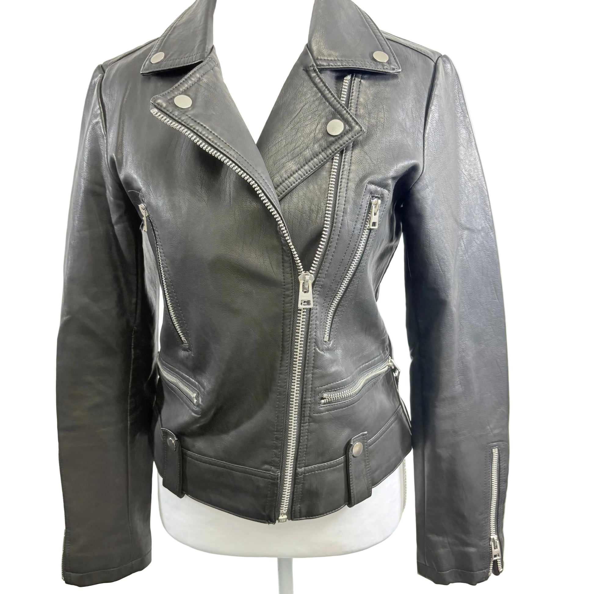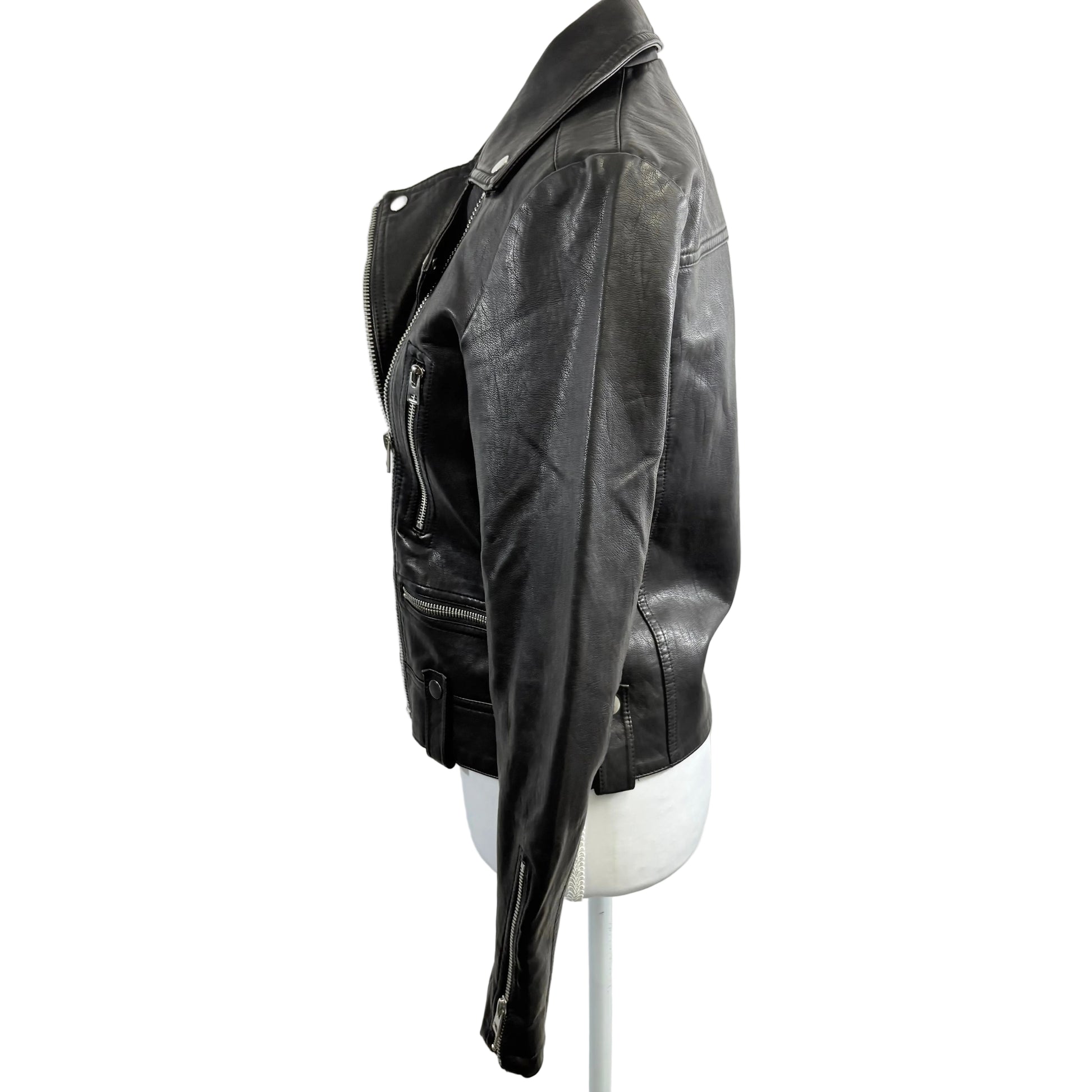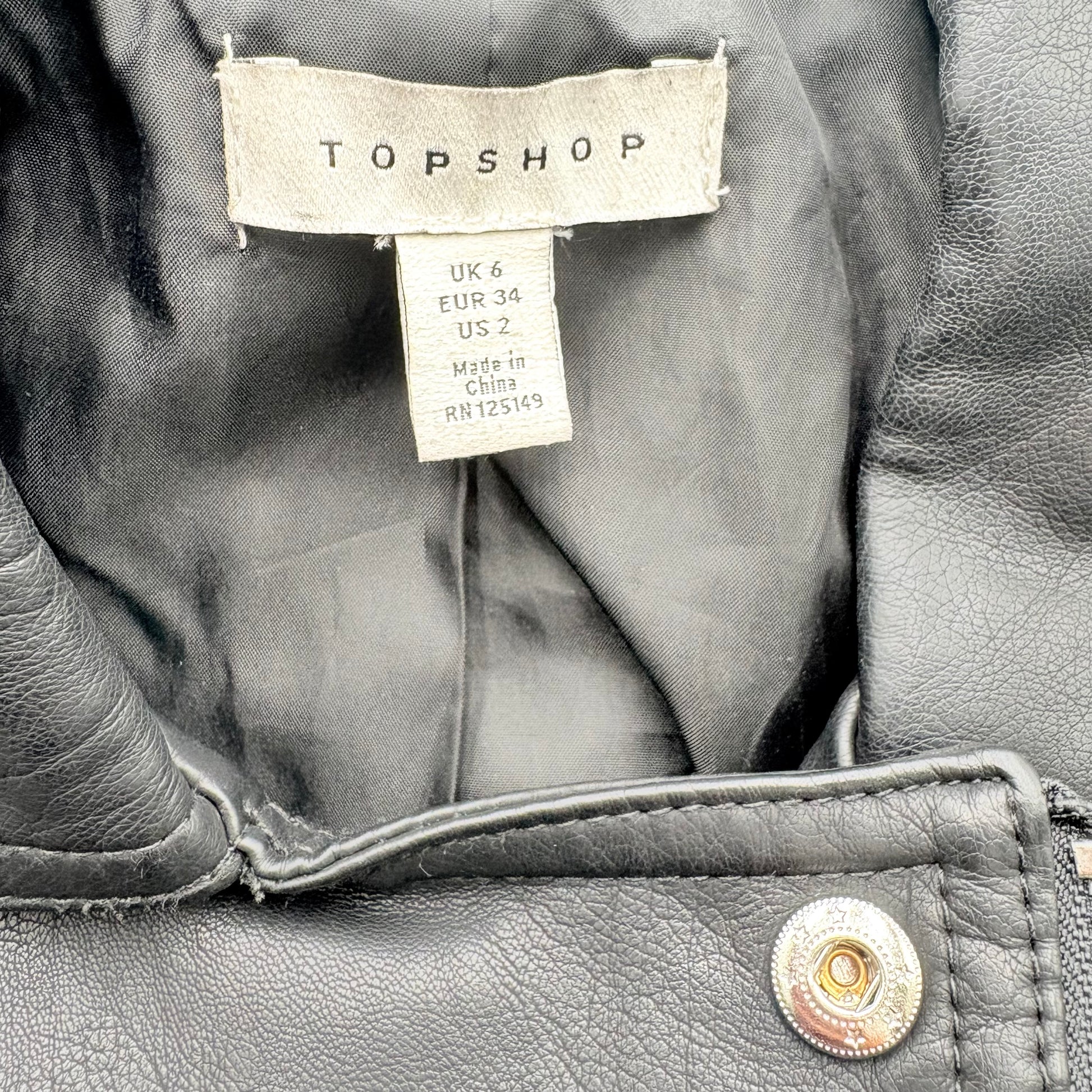 This Top Shop biker jacket channels rebellious sophistication through premium faux leather construction. The tailored fit hugs a size 2 frame with precision, while signature moto elements—asymmetrical zip closure, angled pockets, and cinched waist—create dynamic visual interest. Gently worn and impeccably cared for, the material maintains its supple drape and lustrous finish. An investment piece that delivers edge without compromise, perfect for layering over minimalist basics or statement pieces alike.