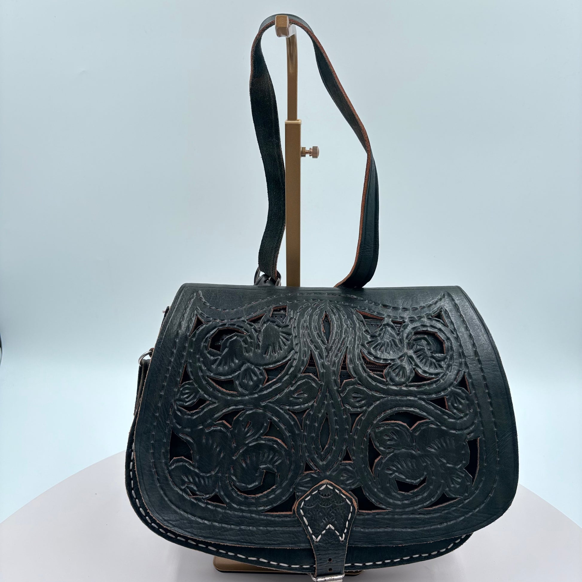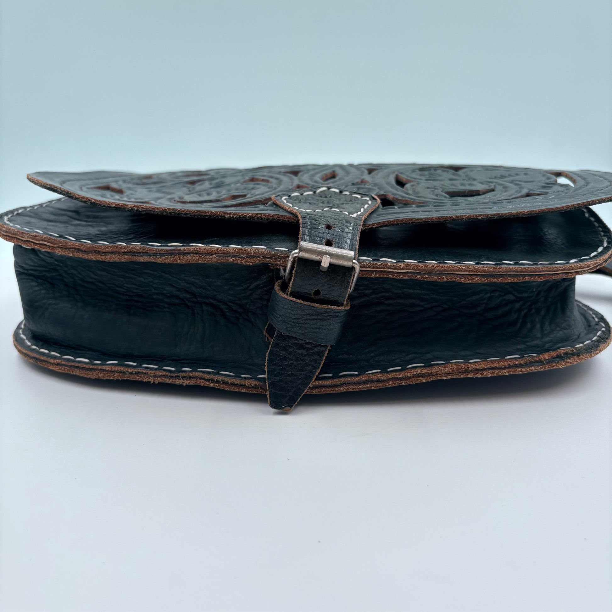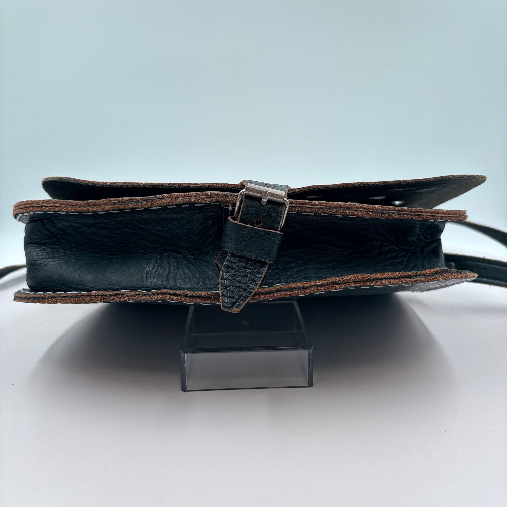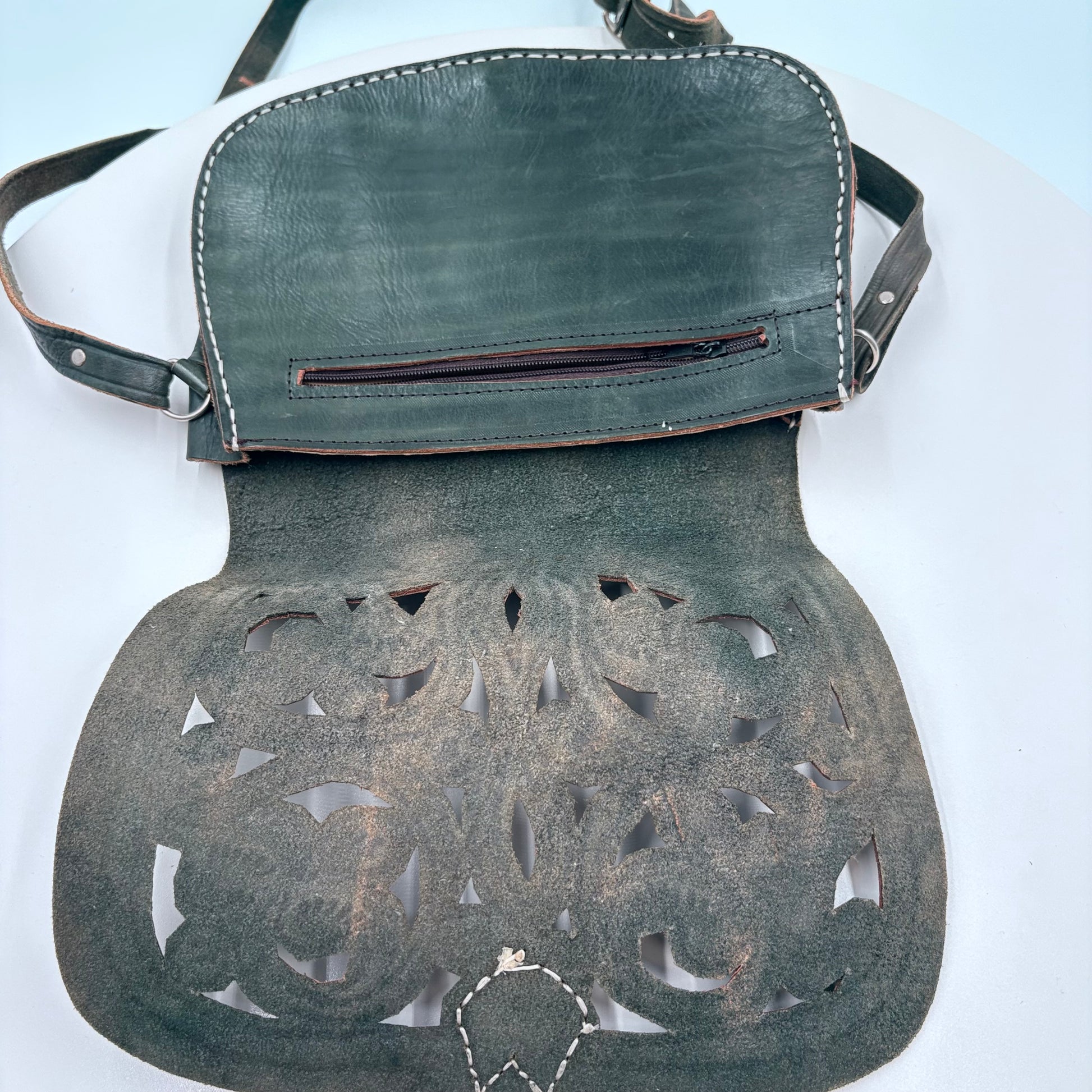 Embrace timeless Western aesthetics with this gently used cross body purse, a versatile accessory that seamlessly transitions from casual outings to weekend adventures. Crafted in the classic Western style, this no-brand piece features authentic detailing and a practical cross body design that keeps your hands free while maintaining easy access to essentials. The worn-in character adds genuine vintage charm, making it an ideal choice for those seeking distinctive, sustainable fashion. Perfect for collectors of Western-inspired accessories or anyone looking to add understated personality to their everyday wardrobe. 12"W X 8.5"H X 3"W