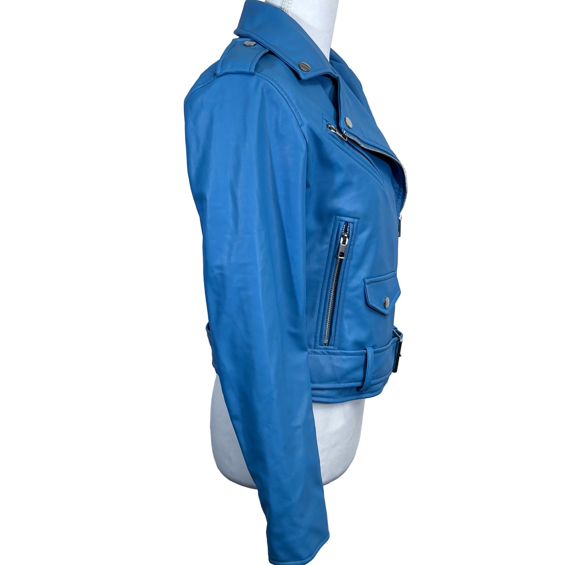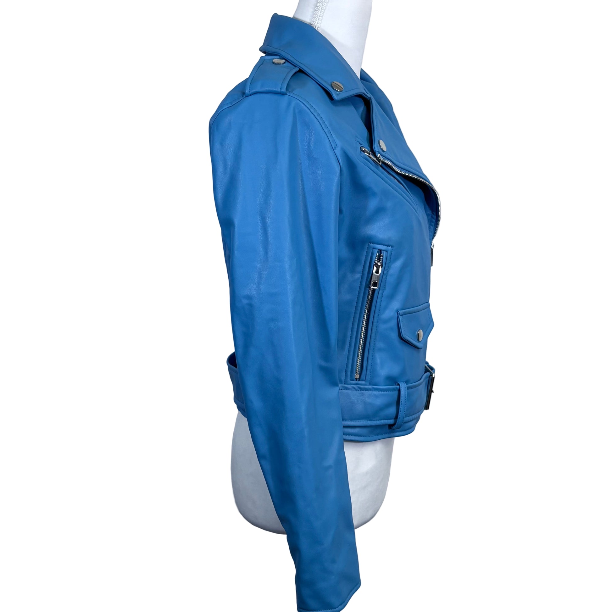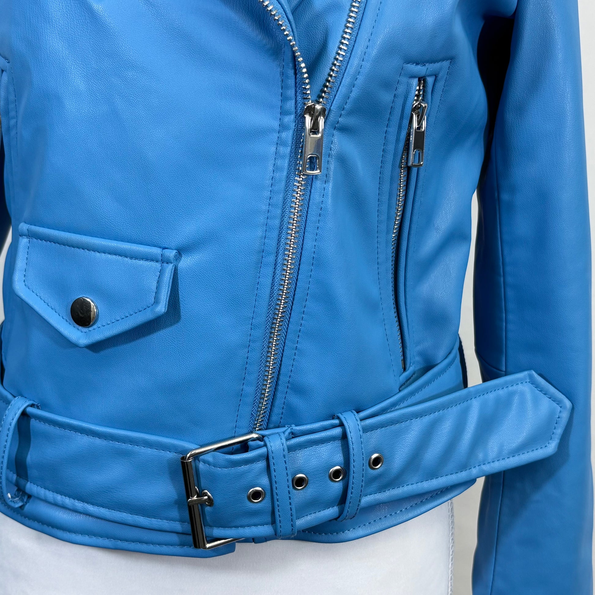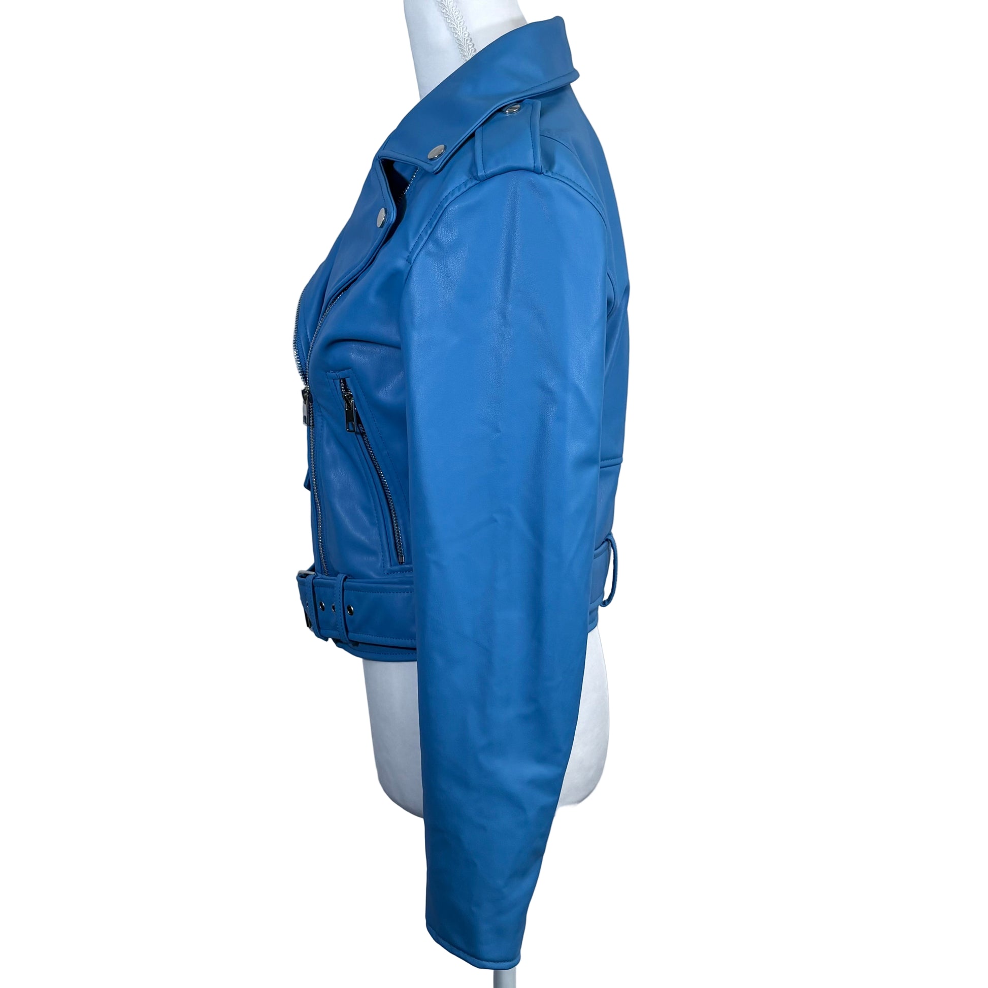 Zara Faux Leather women's biker style crop jacket with belt, size small