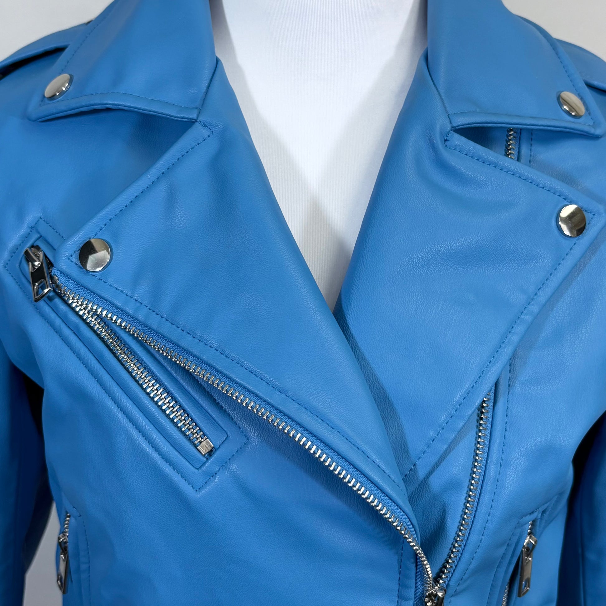 Zara Faux Leather Women's Biker Style Crop Jacket with Belt This gently used Zara biker jacket delivers authentic edge with a modern silhouette. Crafted from faux leather, it features a structured crop cut that hits at the waist, paired with a removable belt for versatile styling. The classic moto design includes zippered pockets and hardware detailing that captures the rebellious spirit of biker aesthetics. Perfect for layering over dresses or pairing with high-waisted bottoms, this piece transitions seamlessly from casual to evening wear. Minimal wear preserves its quality and appeal for the discerning vintage fashion enthusiast.